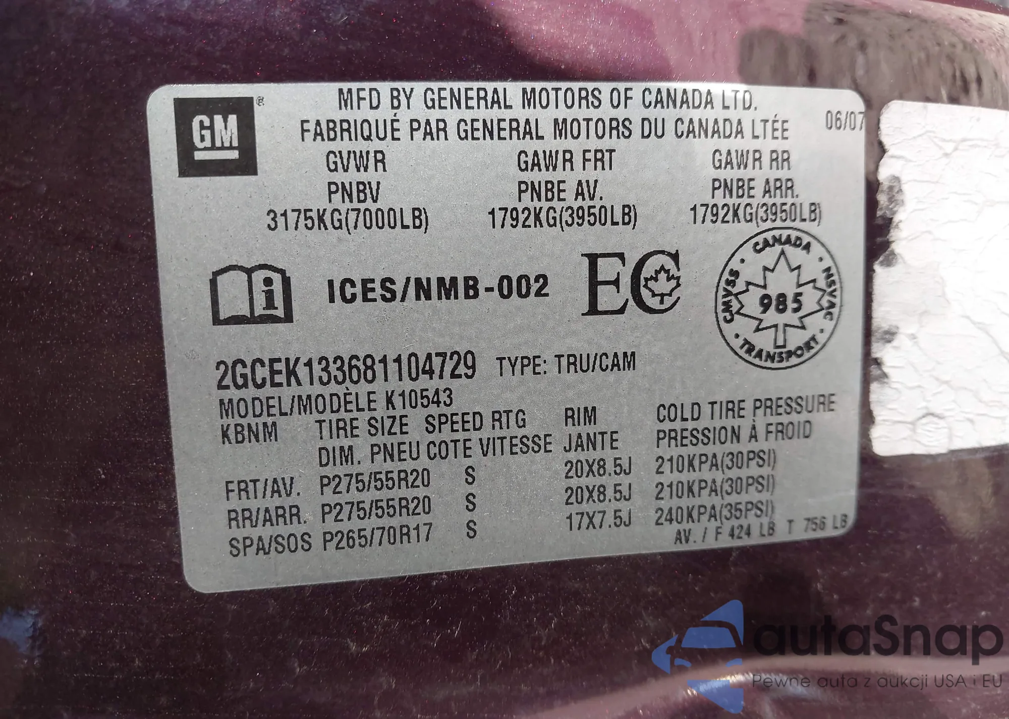 • VIN 2GCEK133681104729