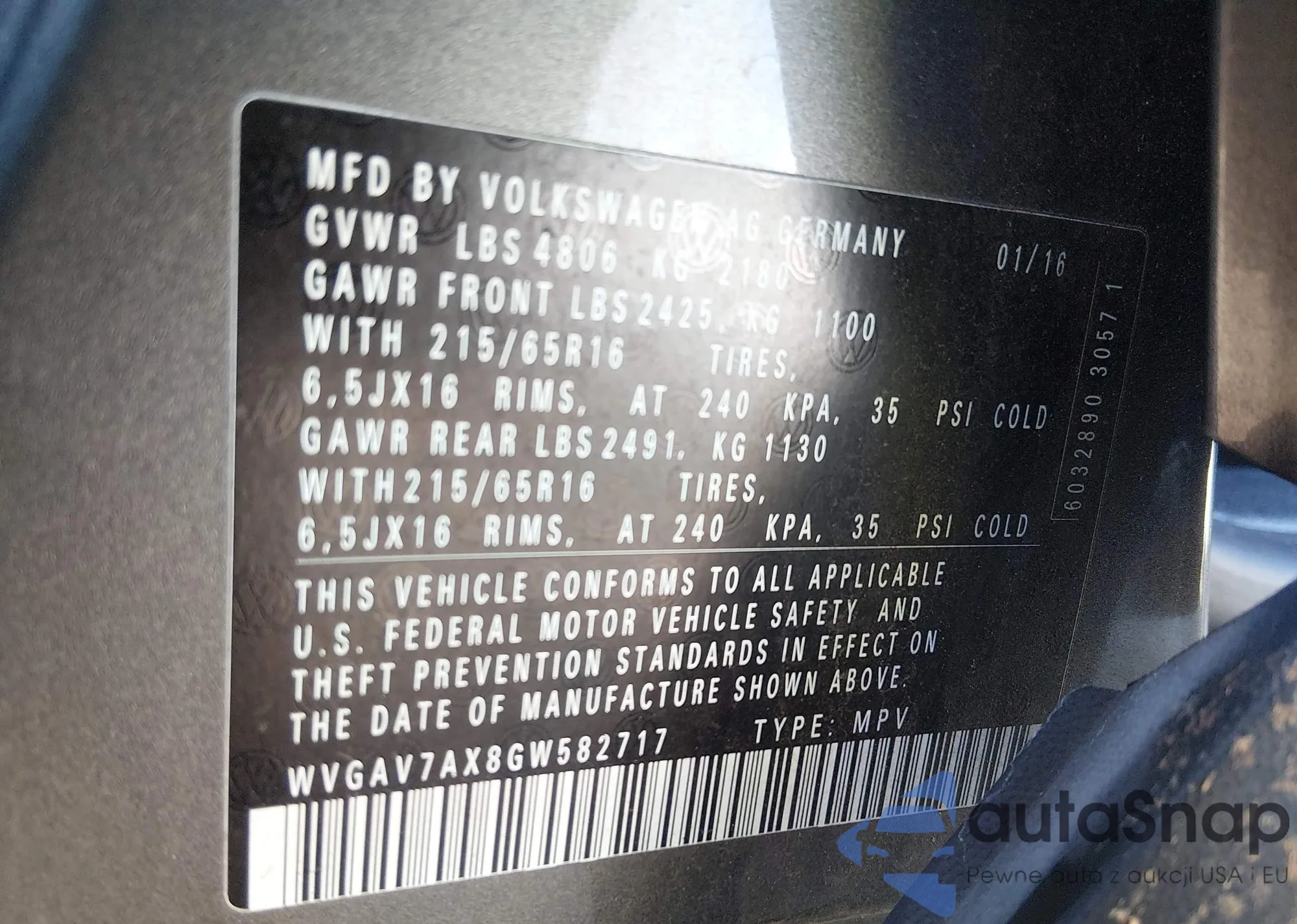• VIN WVGAV7AX8GW582717