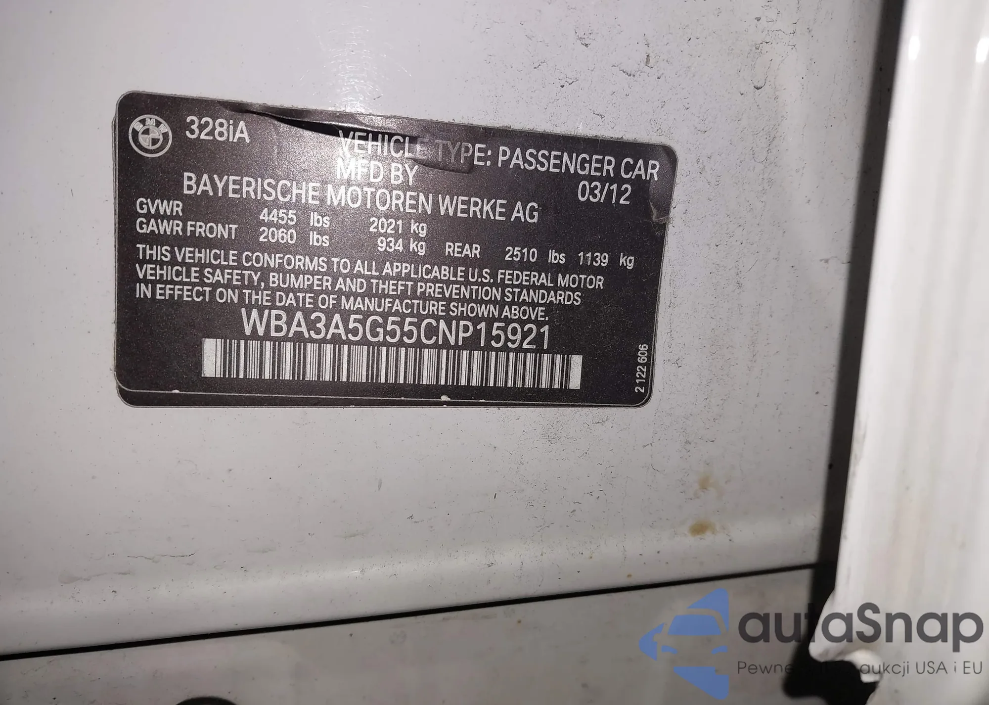 • VIN 3FAHP0JA8AR341661