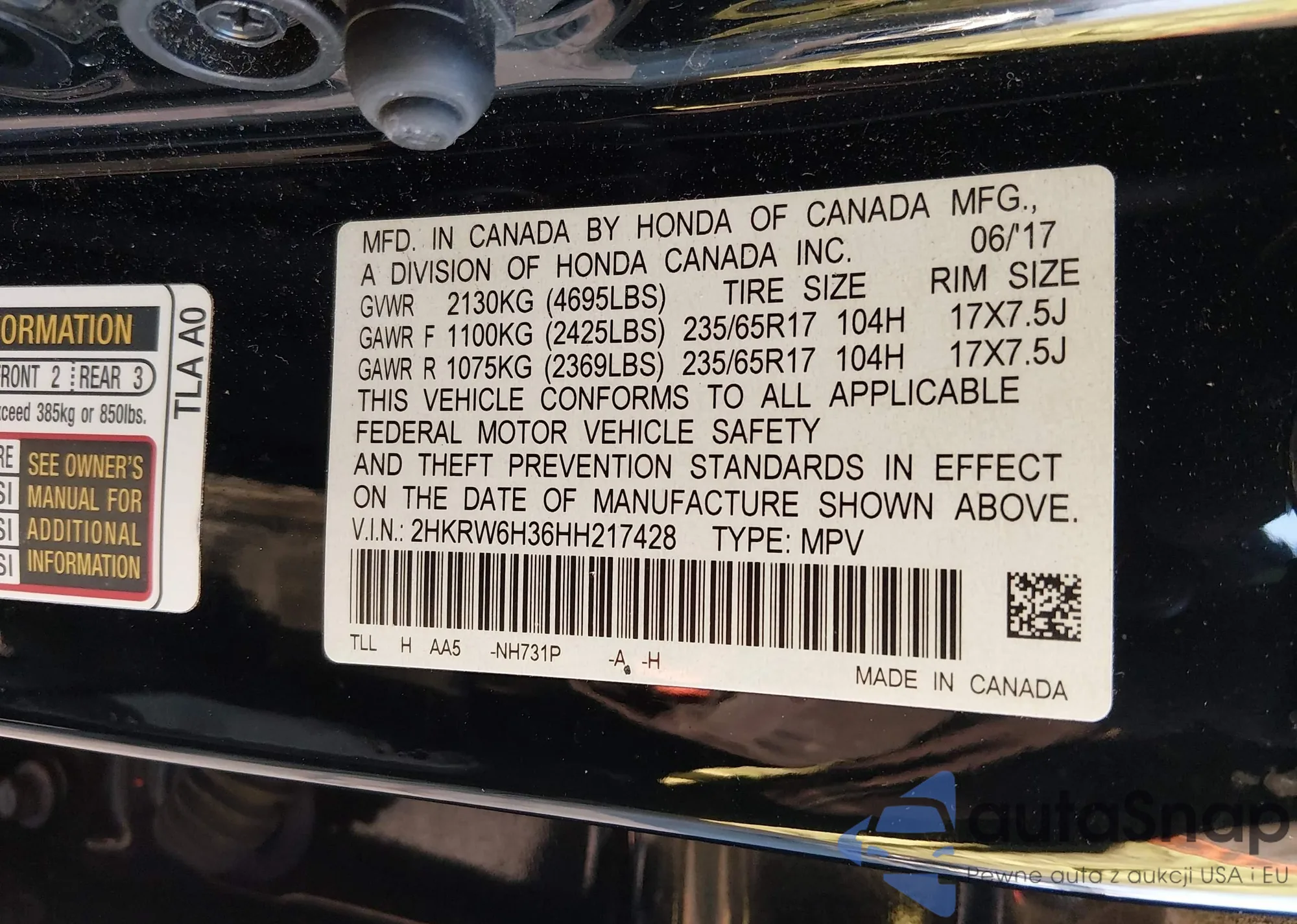 • VIN 3CZRU6H31GM727758