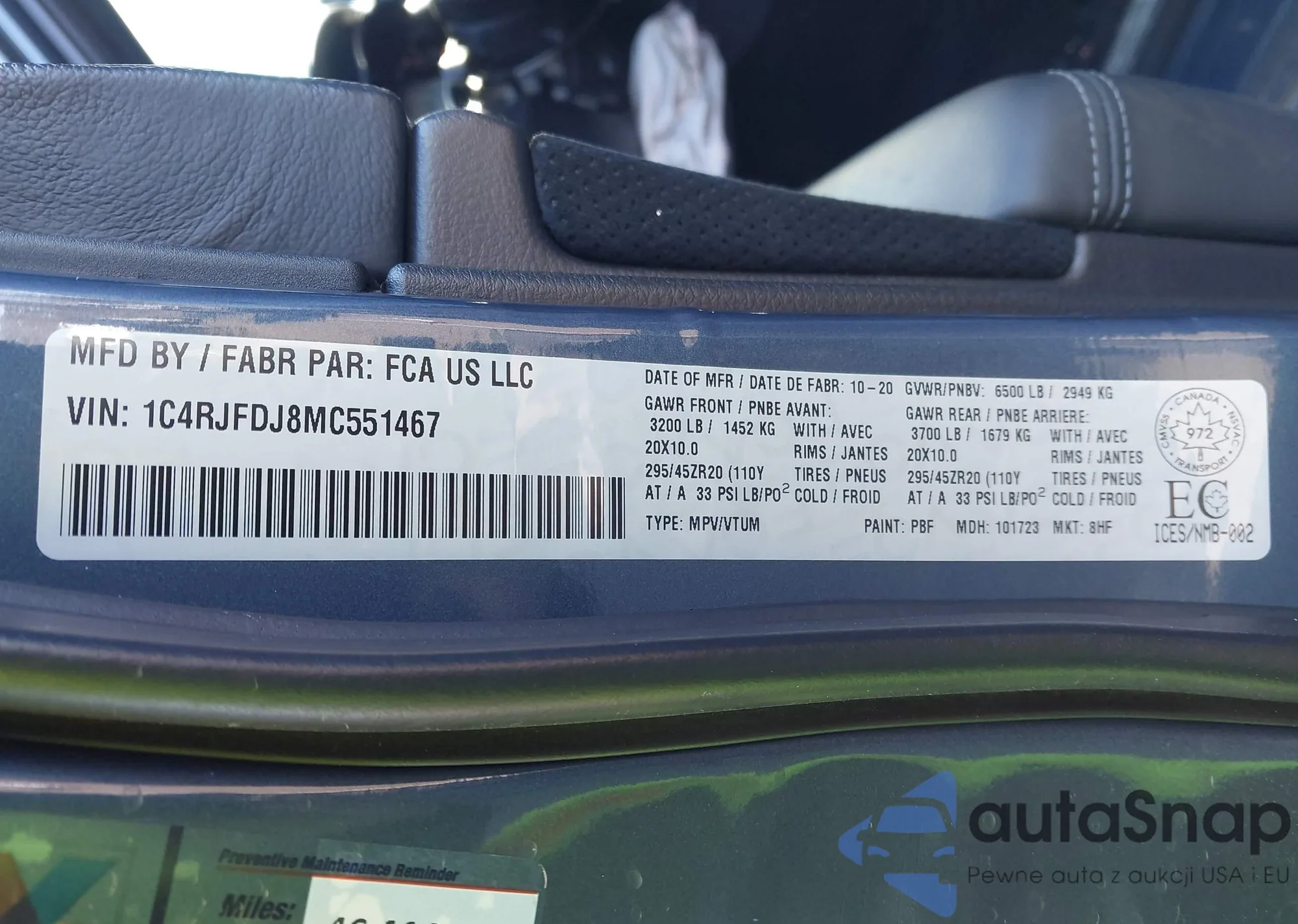 • VIN 1C4RDJDG1HC796969