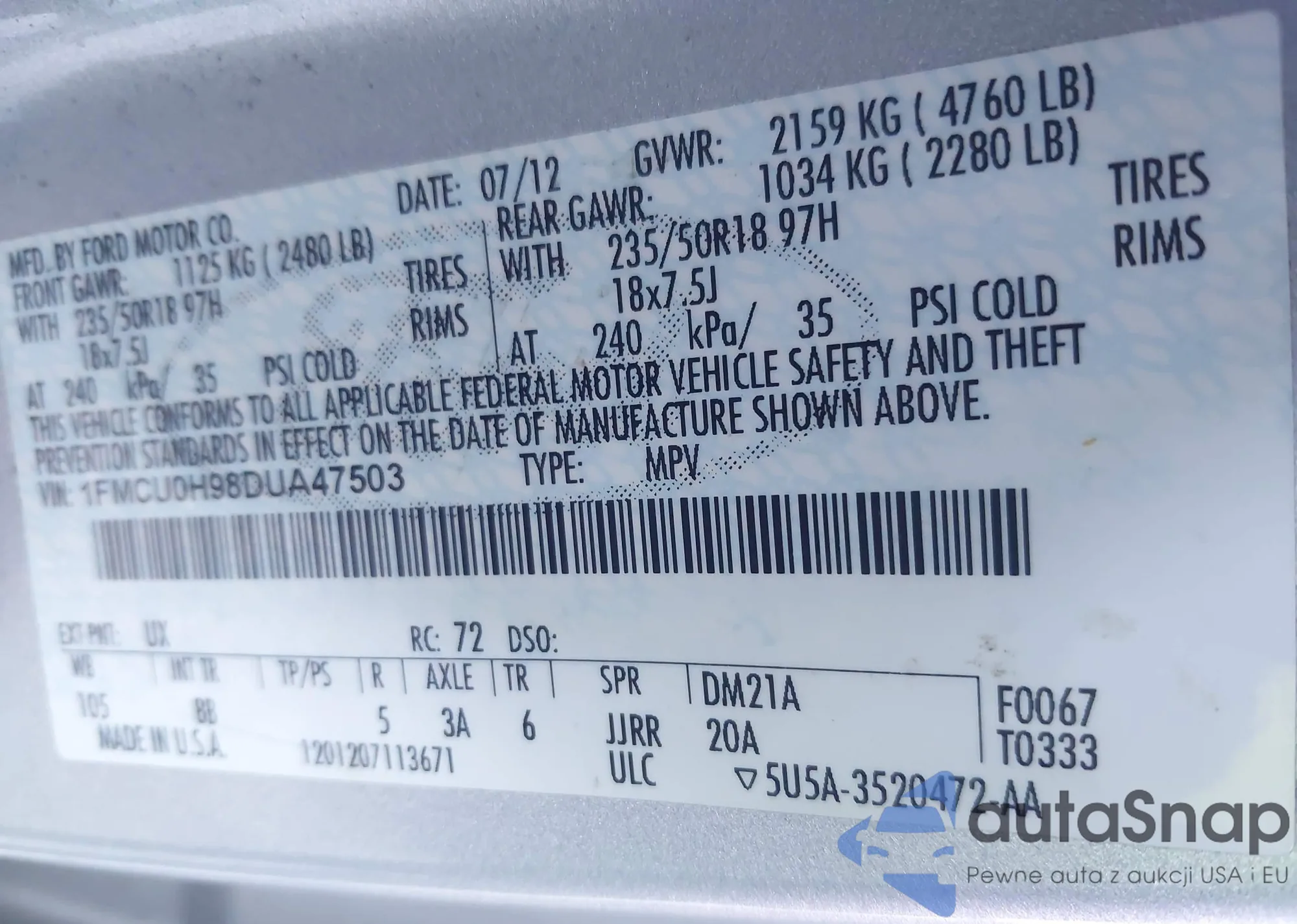 • VIN 5YFBU4EE7DP213113