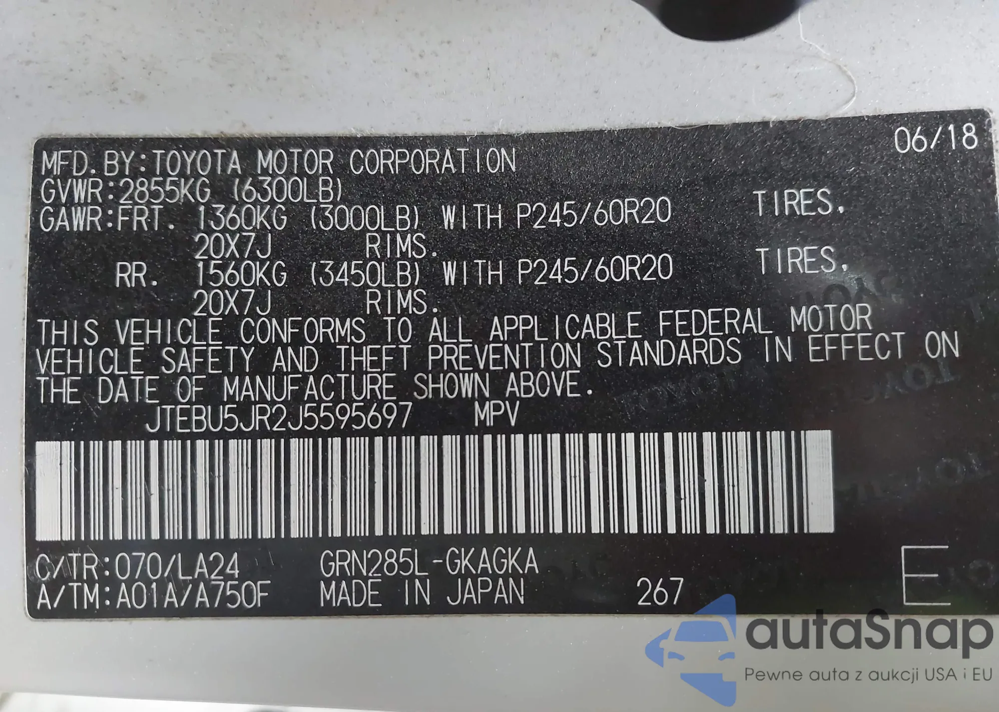 LOT: 44202873 VIN: JTEBU5JR2J5595697