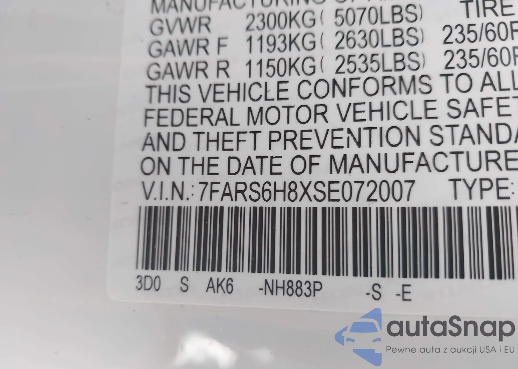 • VIN 2T3WFREV2HW385649