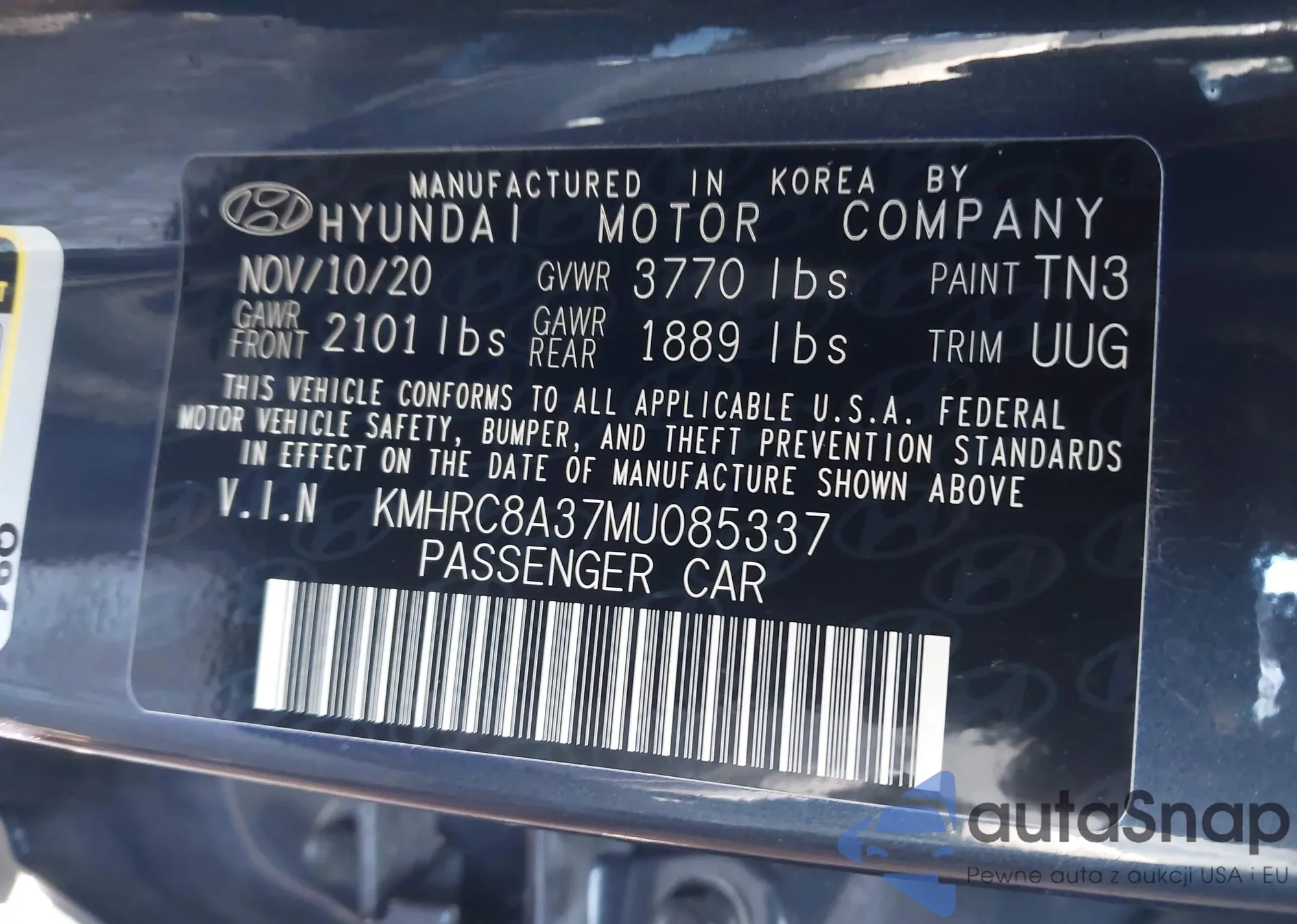 • VIN KMHRC8A37MU085337