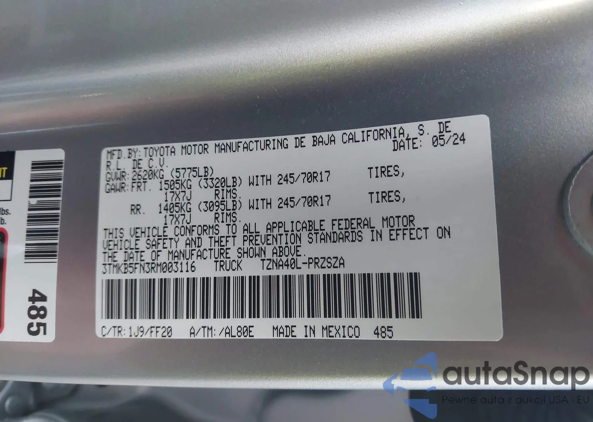 • VIN 3TMKB5FN3RM003116