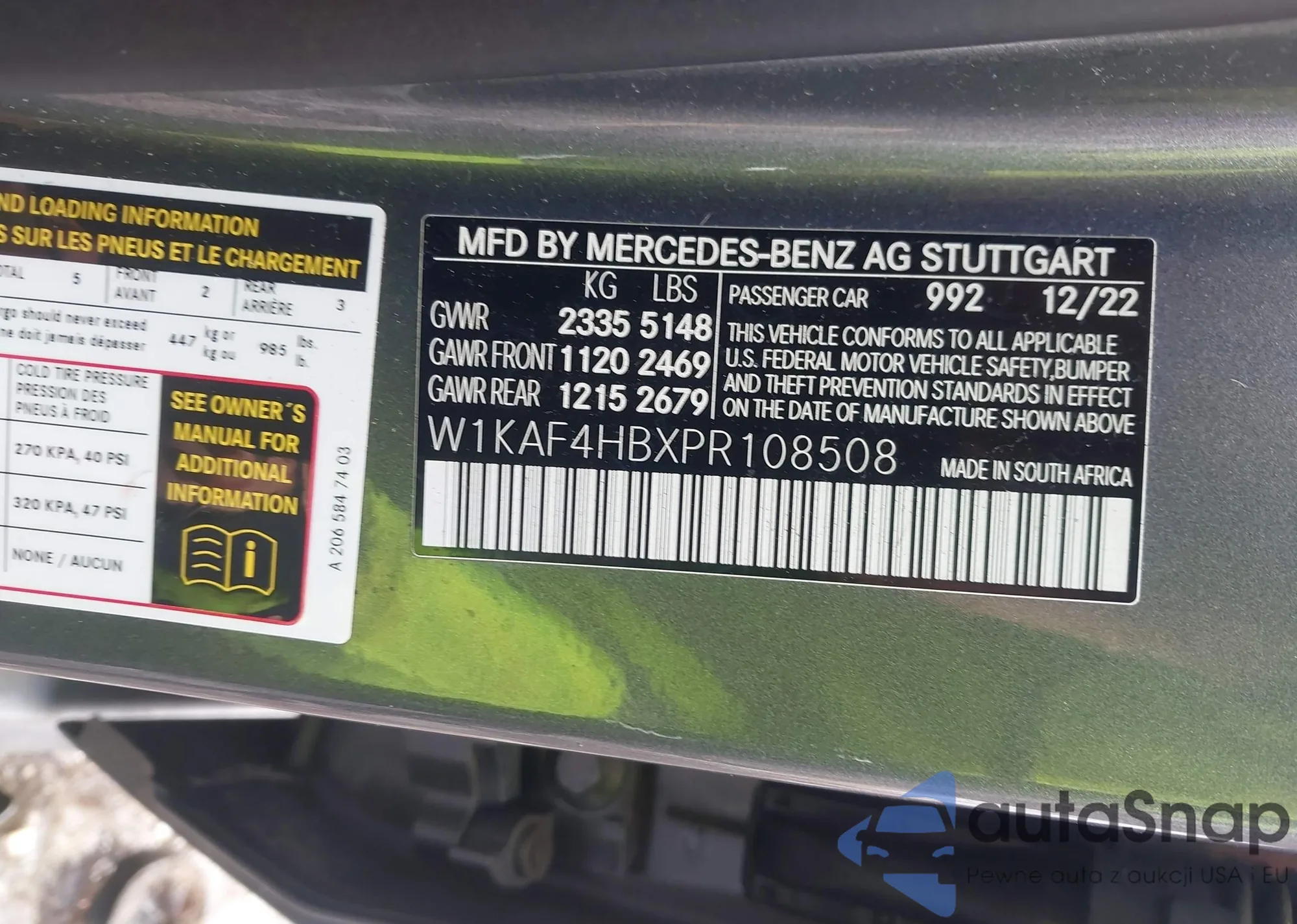 • VIN W1KAF4HBXPR108508
