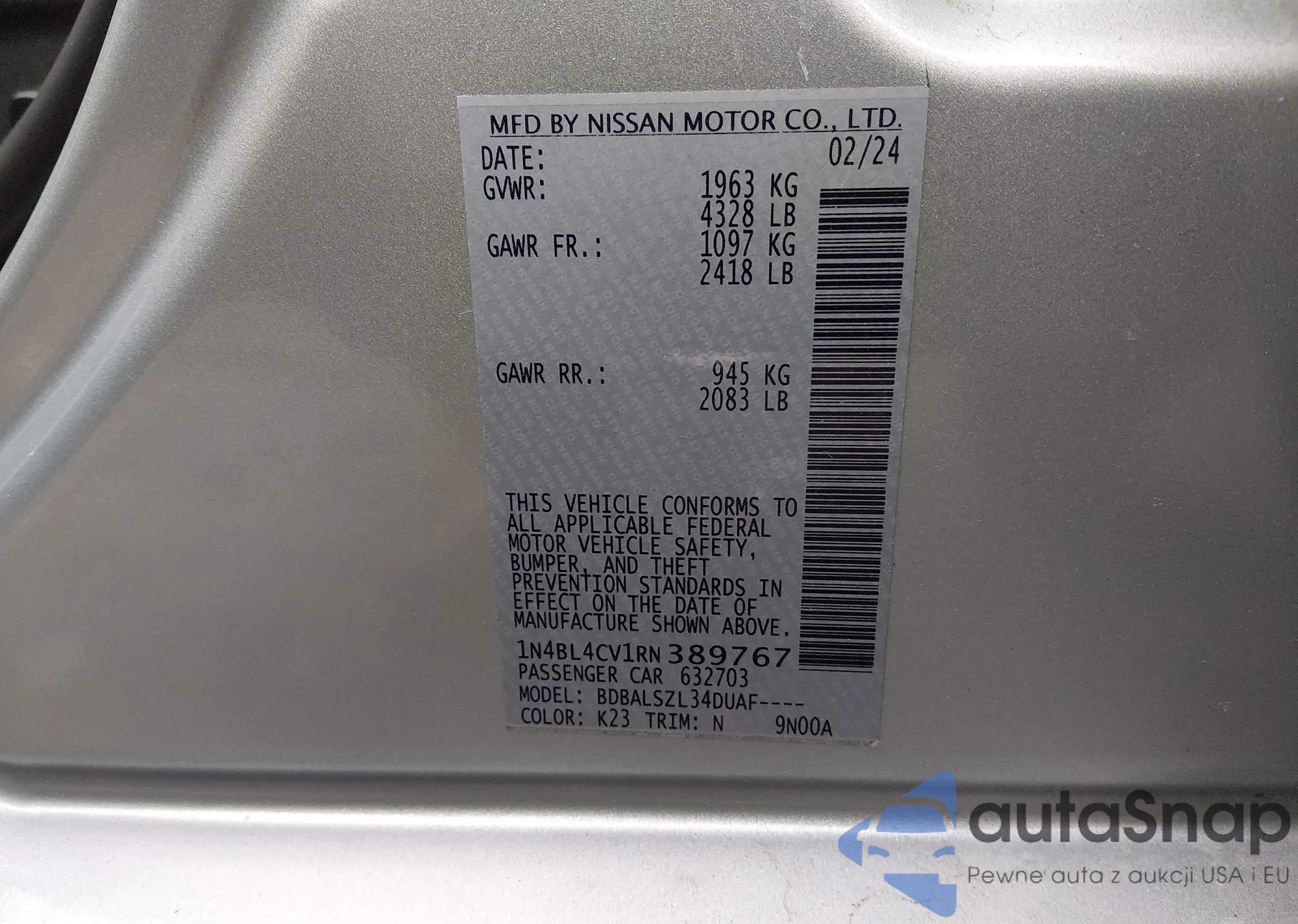 LOT: 42304007 VIN: 1N4AL21E08N481843