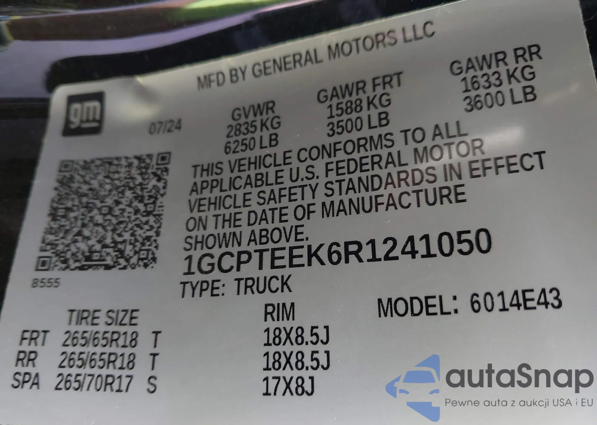 • VIN 1GCPTEEK6R1241050