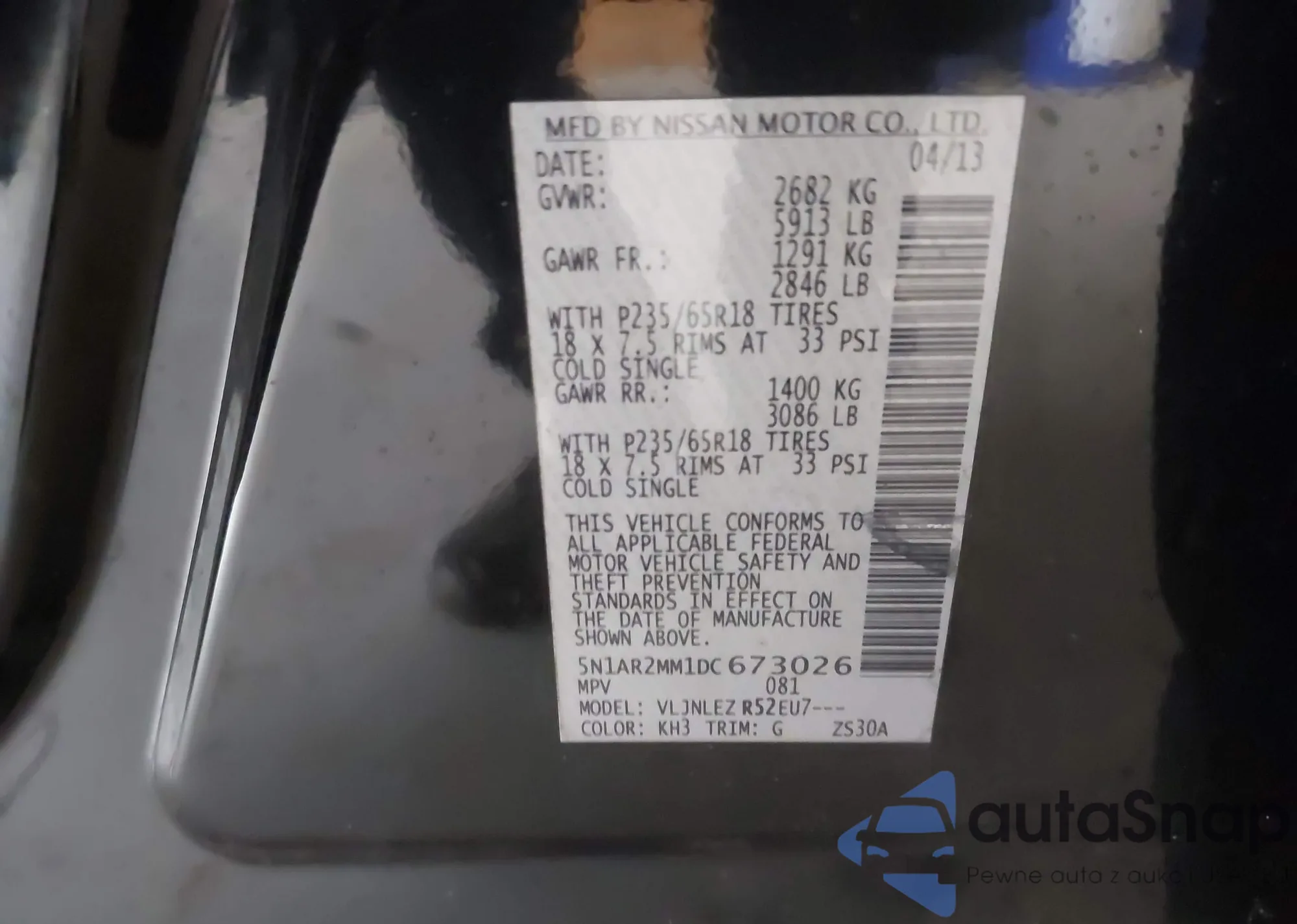 • VIN 5N1AR2MM1DC673026