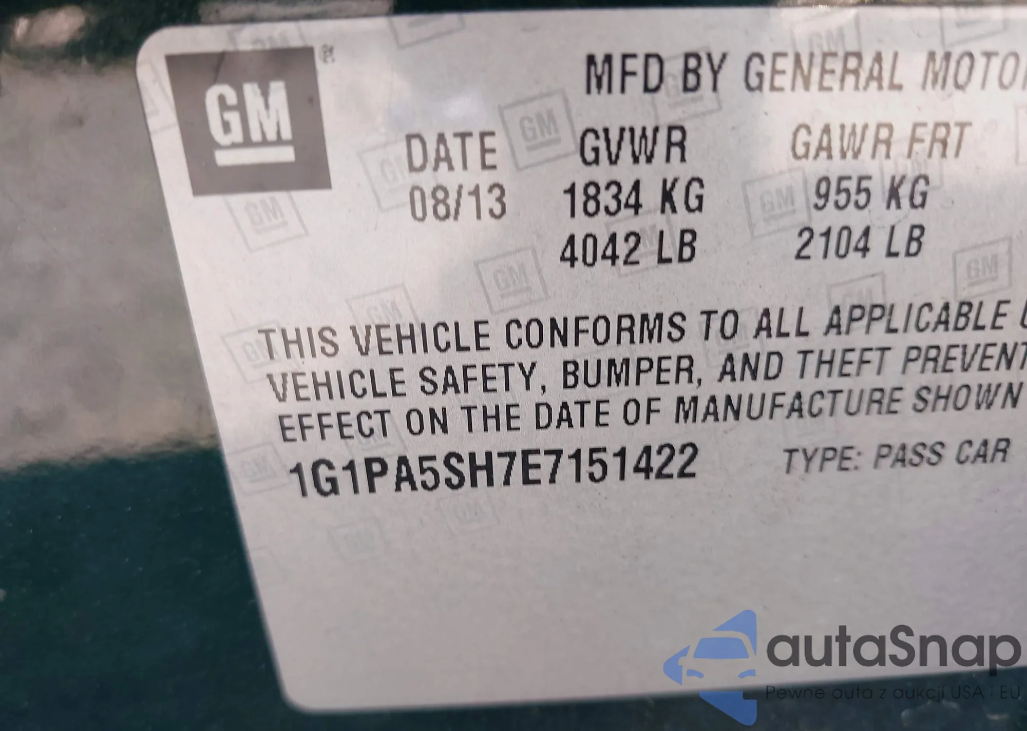 • VIN 1G1PA5SH7E7151422