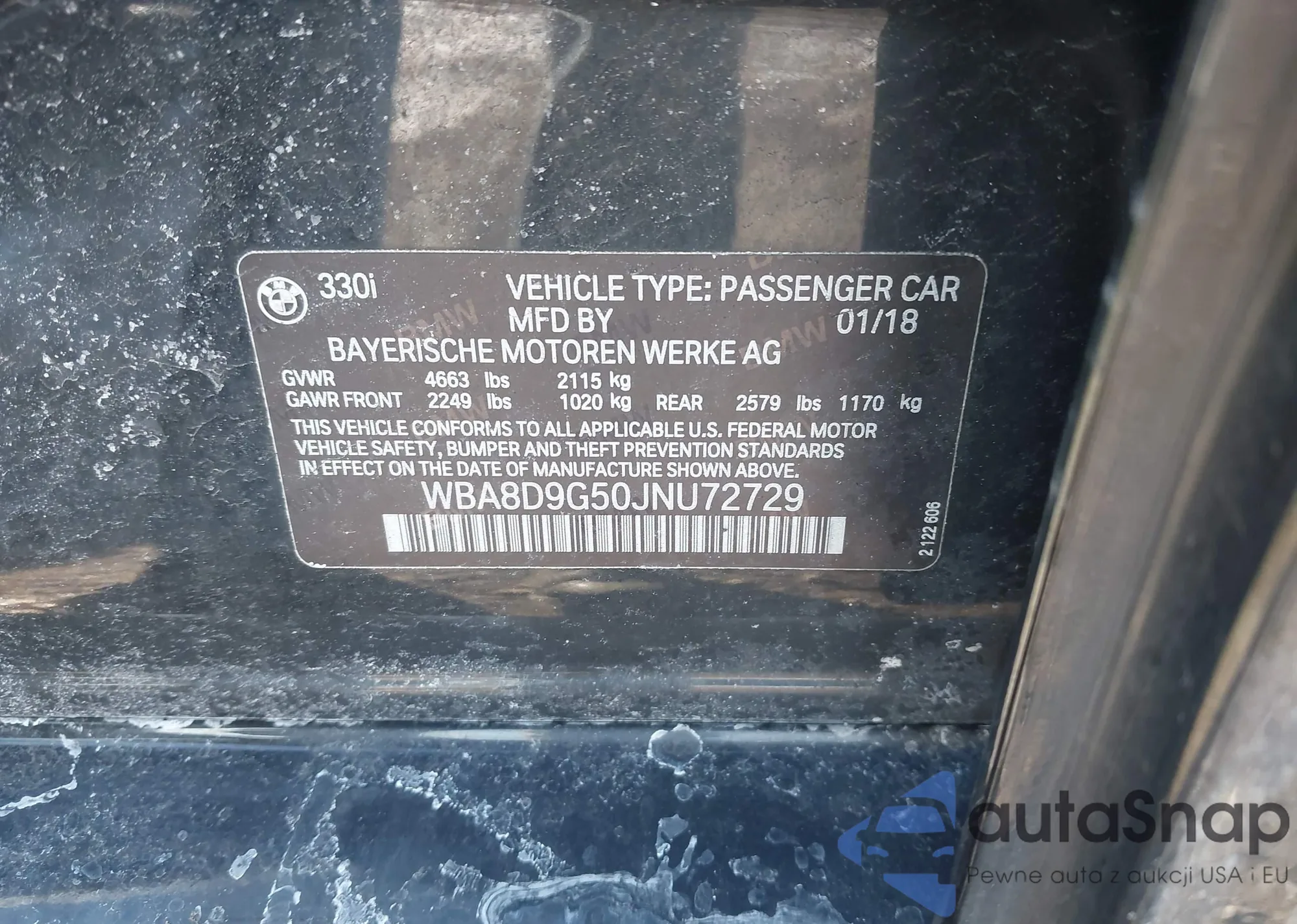 • VIN WBA8D9G50JNU72729