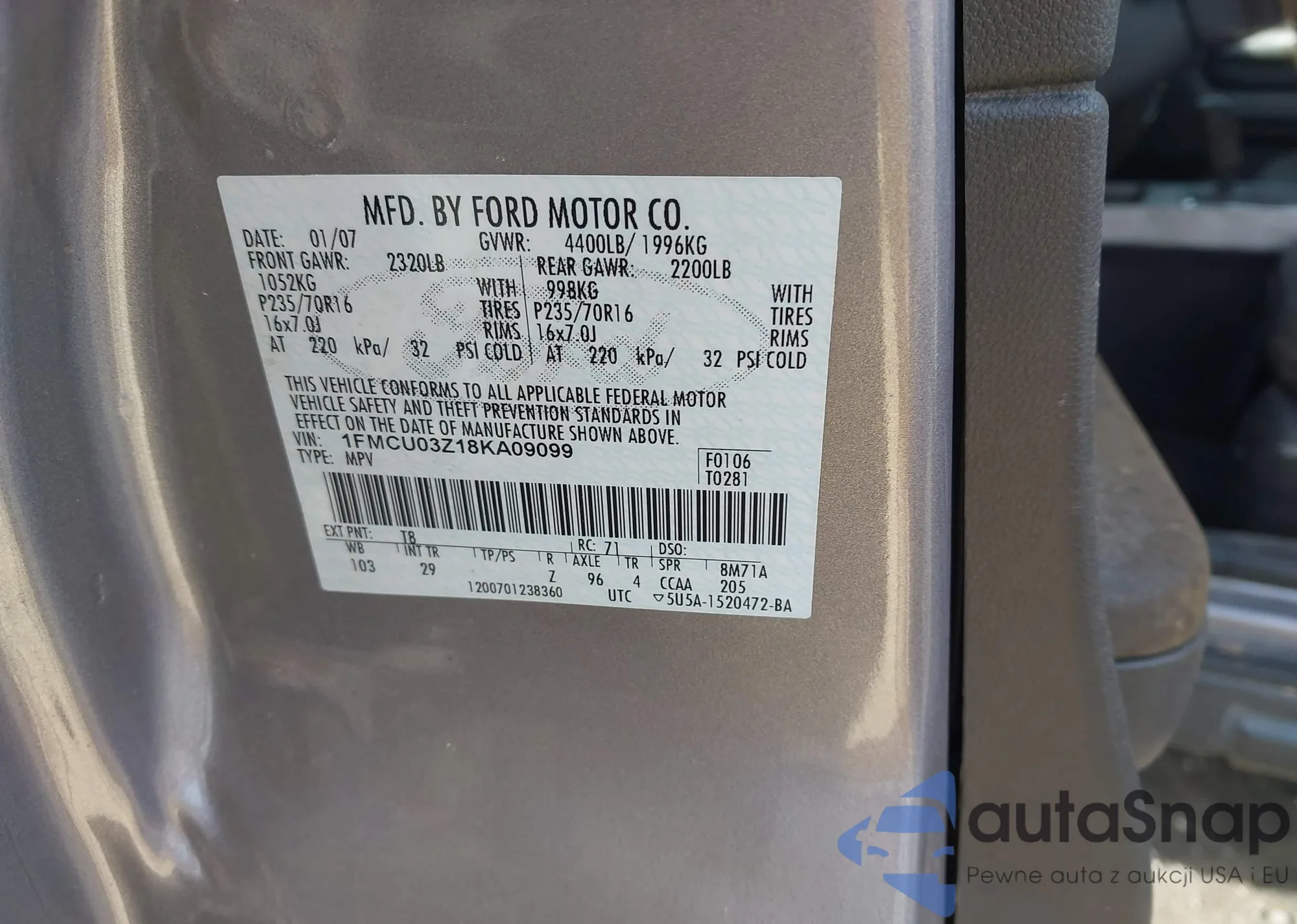 • VIN 1FMCU0HD1KUA33394