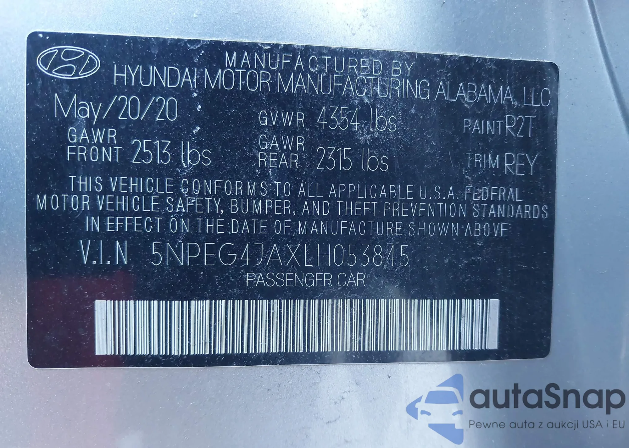 • VIN 5NPEG4JAXLH053845