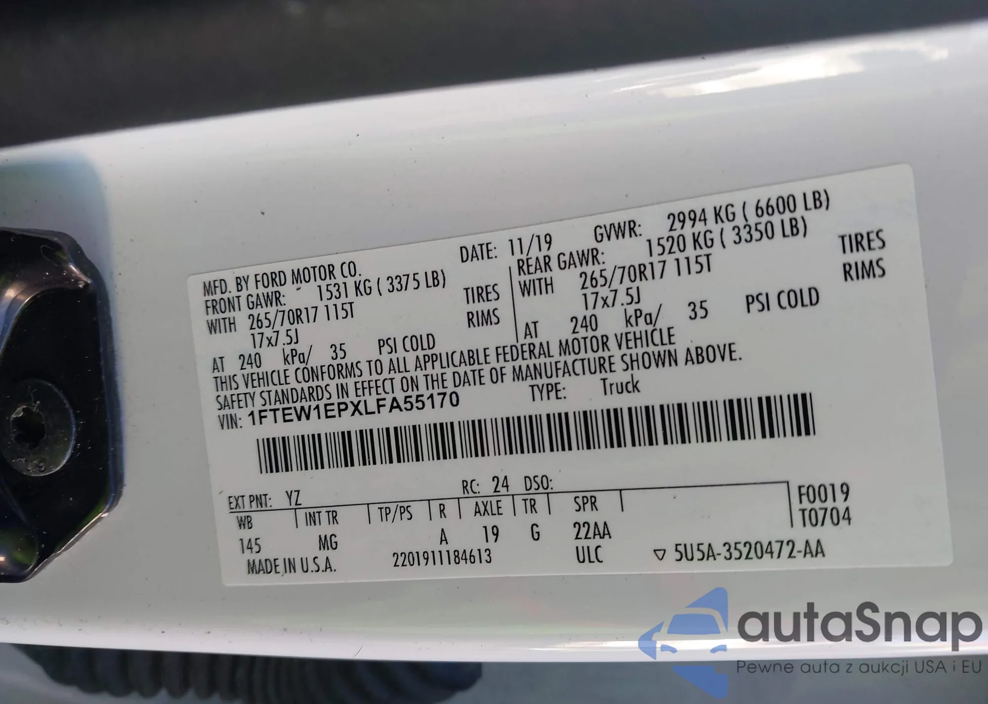 LOT: 44306577 VIN: 1FTEW1EPXLFA55170