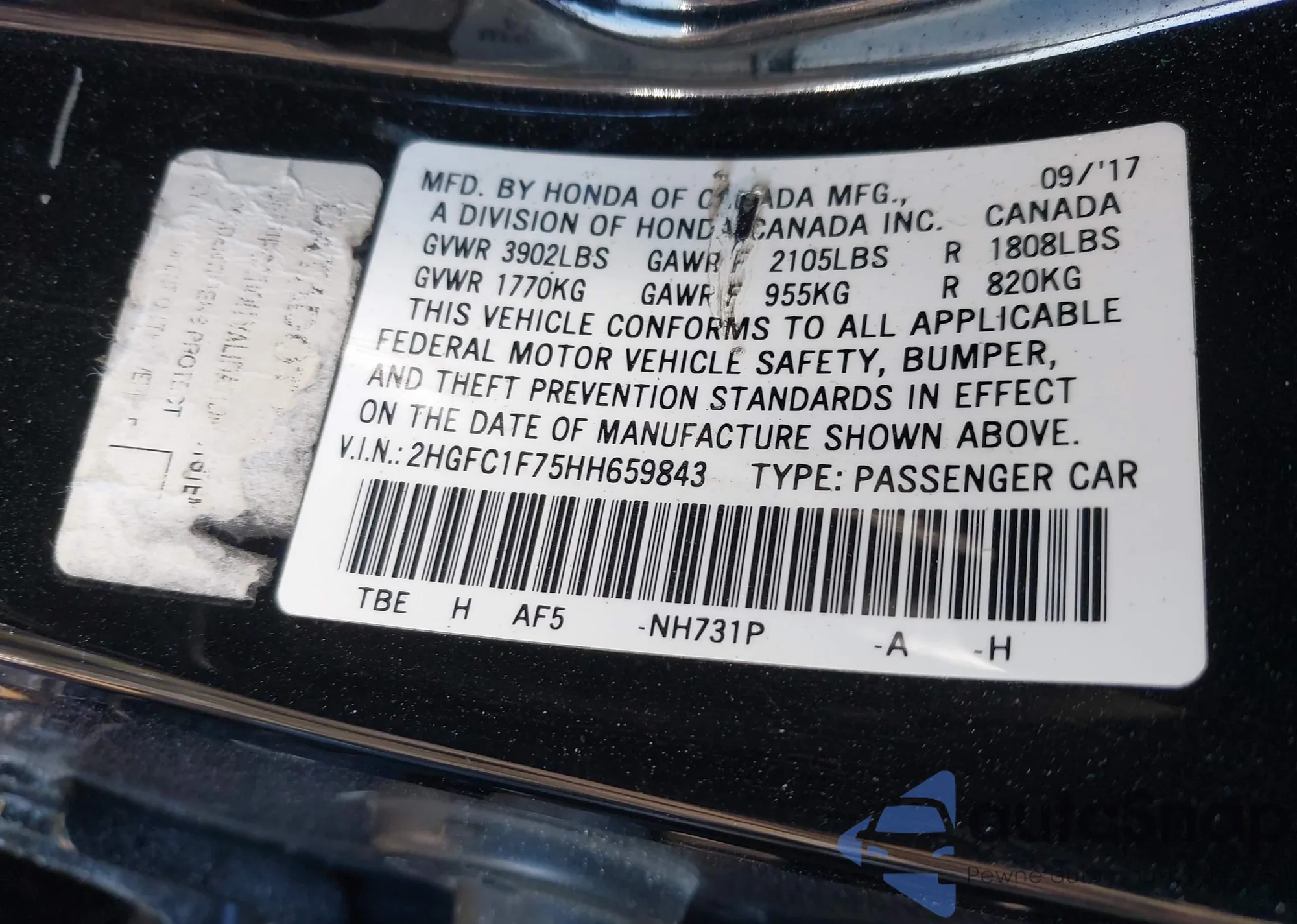 LOT: 44313858 VIN: 2HGFA1F53AH525178