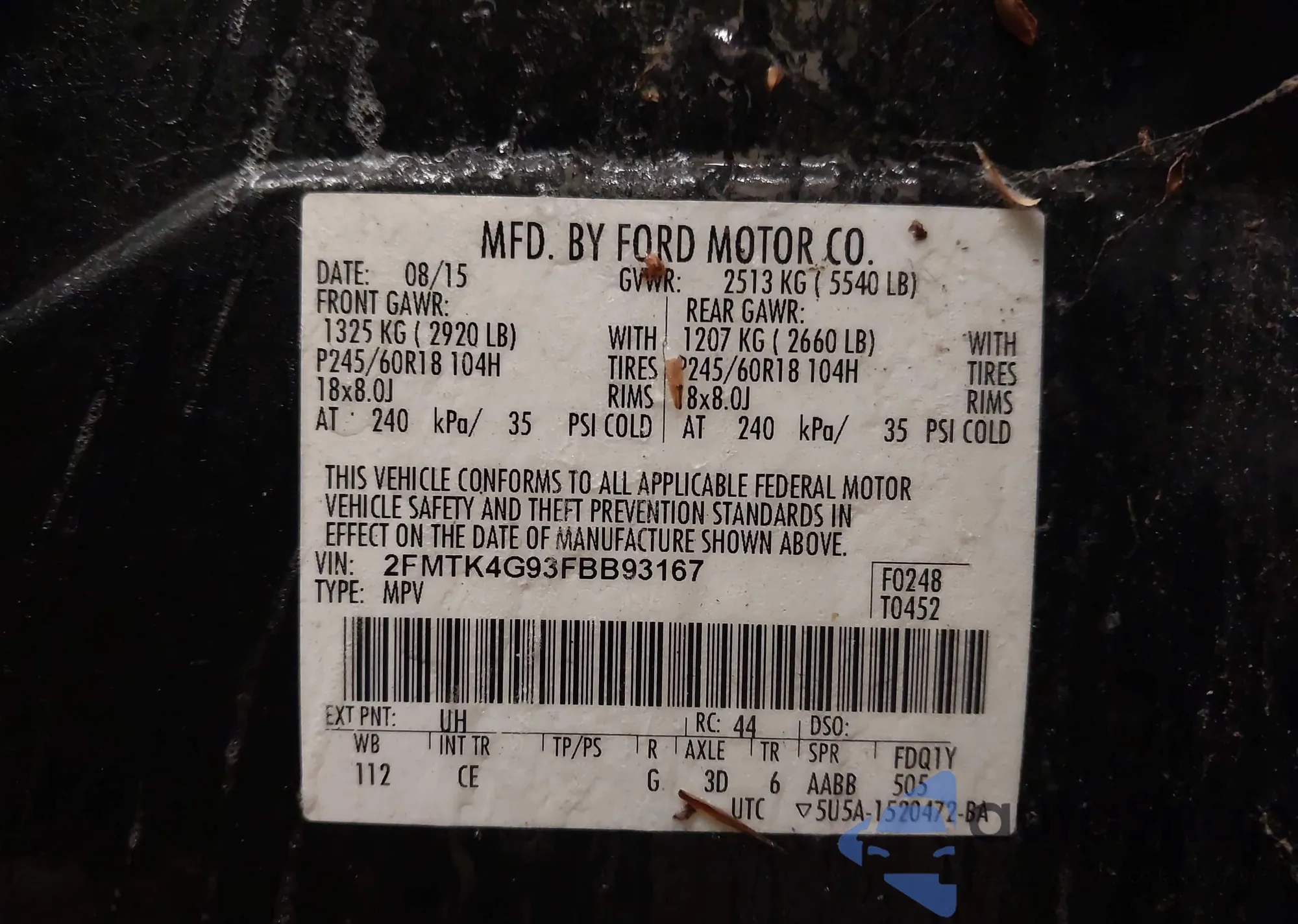 • VIN 1ZVBP8AN5A5128197