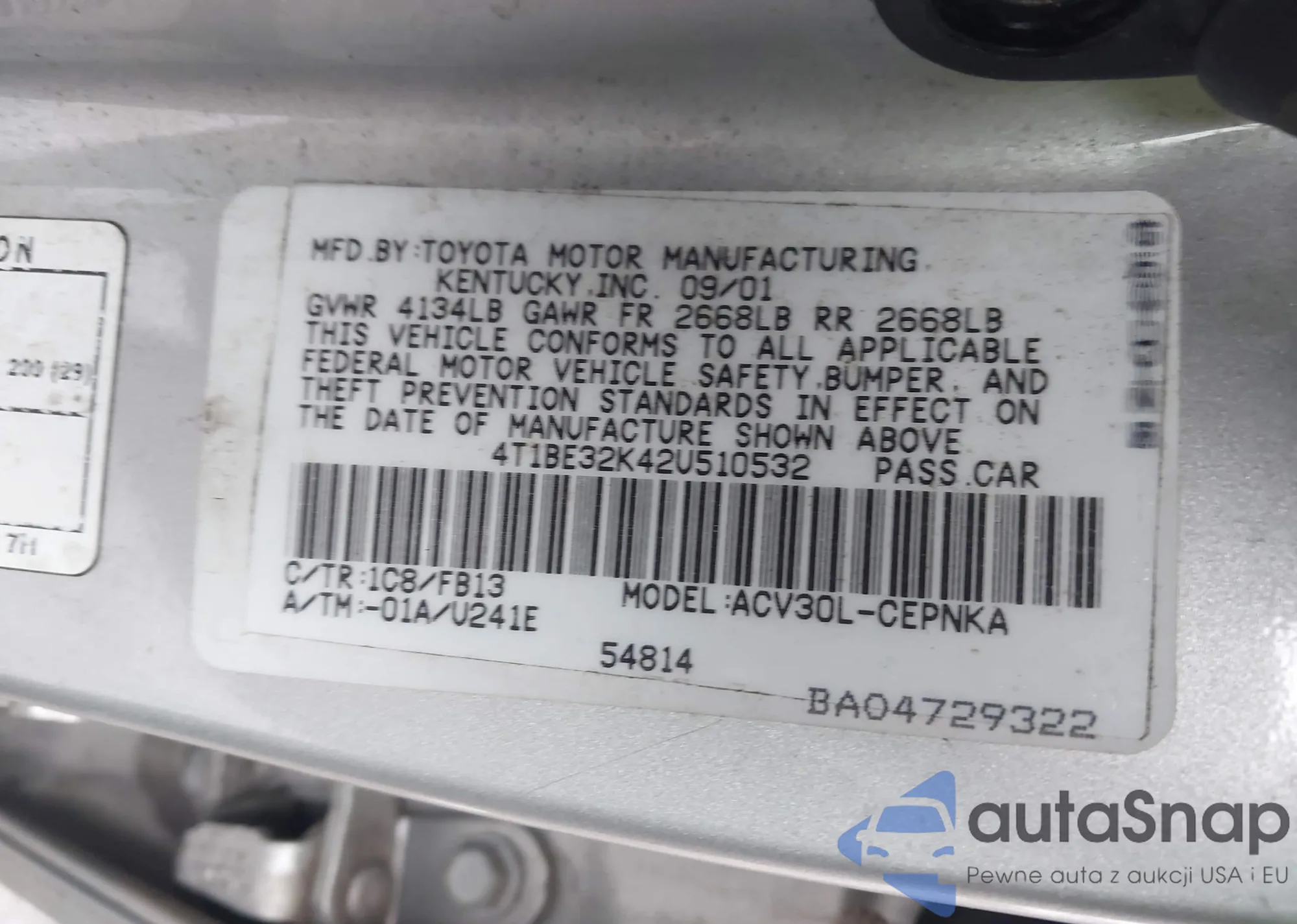 • VIN 4T1BE32K42U510532
