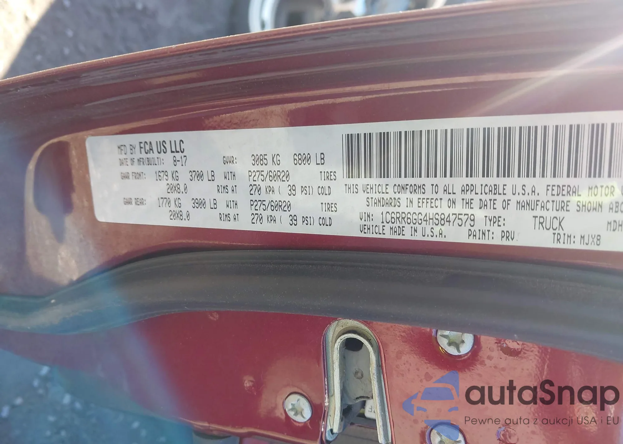 LOT: 44332392 VIN: KM8SR4HF8HU250150