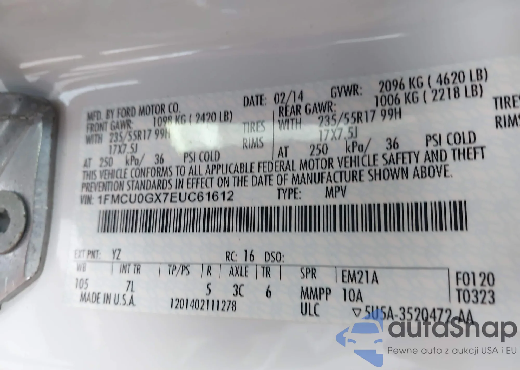 LOT: 44292626 VIN: 1FMCU0GX7EUC61612
