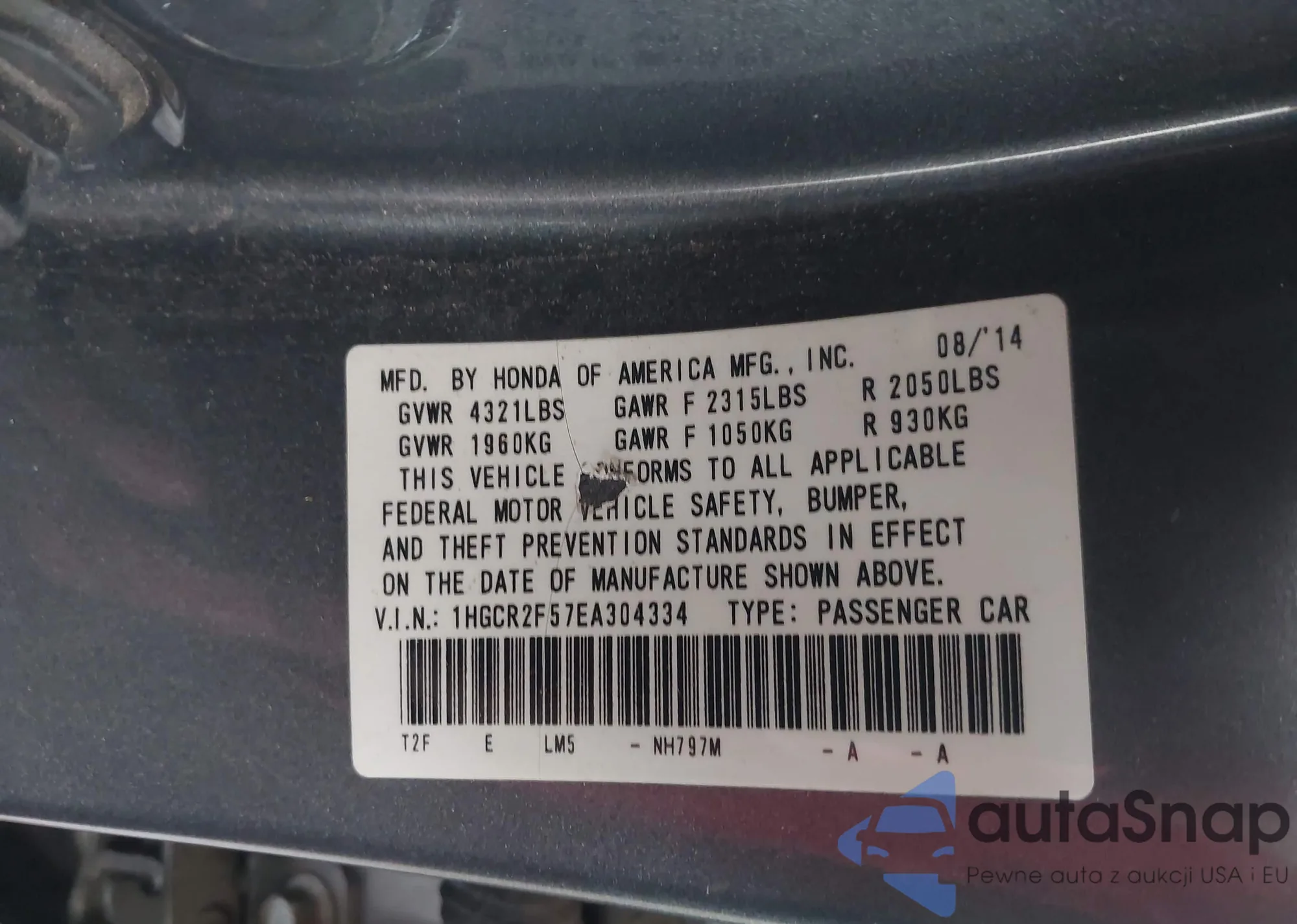 LOT: 44396822 VIN: 1HGFA16858L094365
