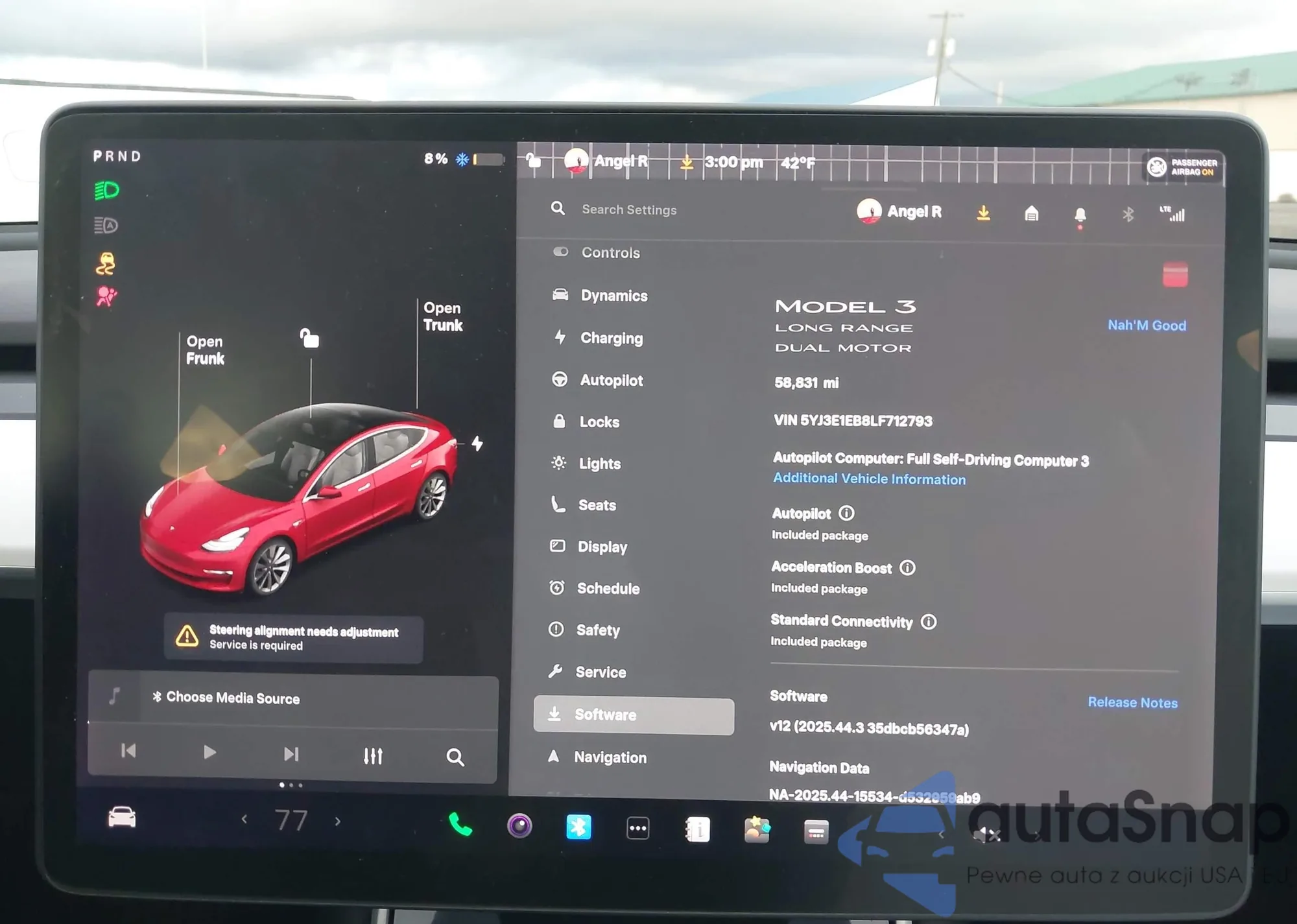 2020 Tesla Model 3 Long Range Dual Motor All-Wheel Drive from USA, damaged, VIN 5YJ3E1EB8LF712793