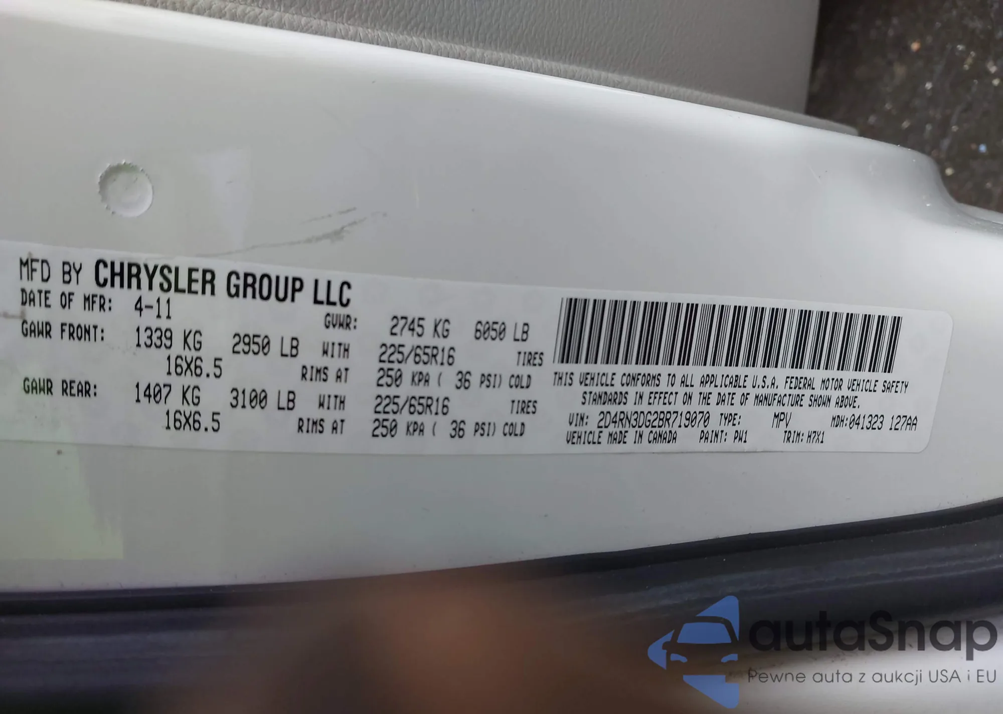 • VIN 2D4RN3DG2BR719070