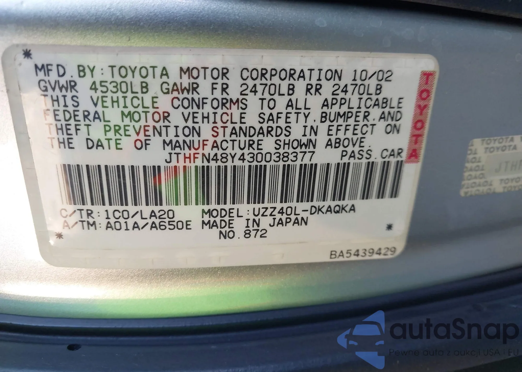 • VIN JTHFN48Y430038377