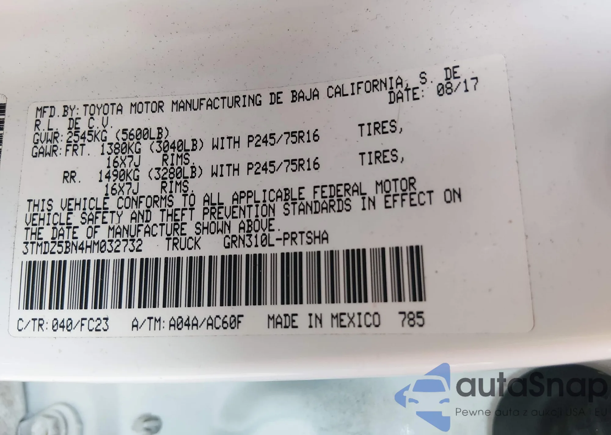 • VIN 5FNYF8H05PB007557