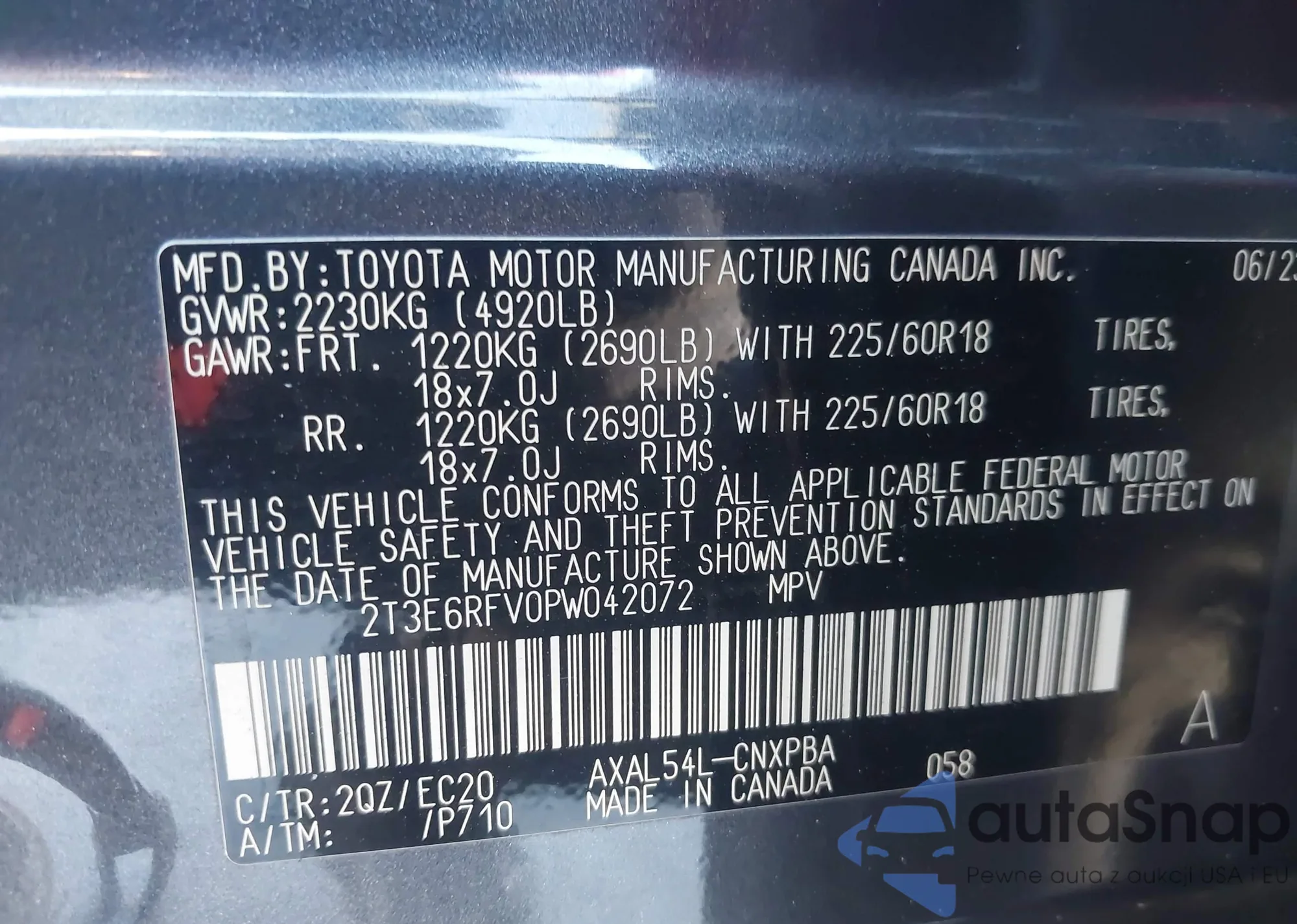• VIN 5TDKDRBH7PS509160