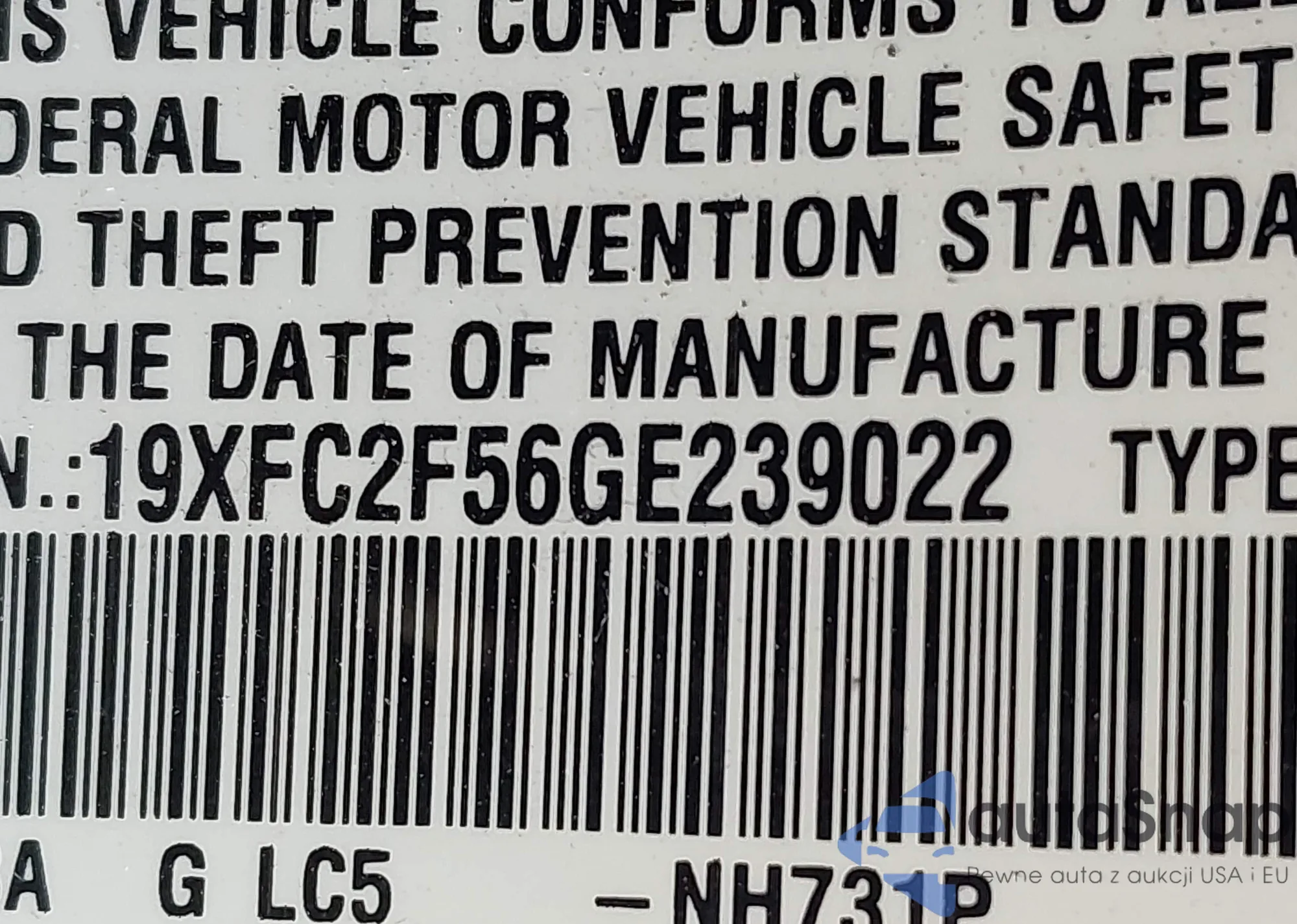 • VIN 5FNRL5H62BB096853