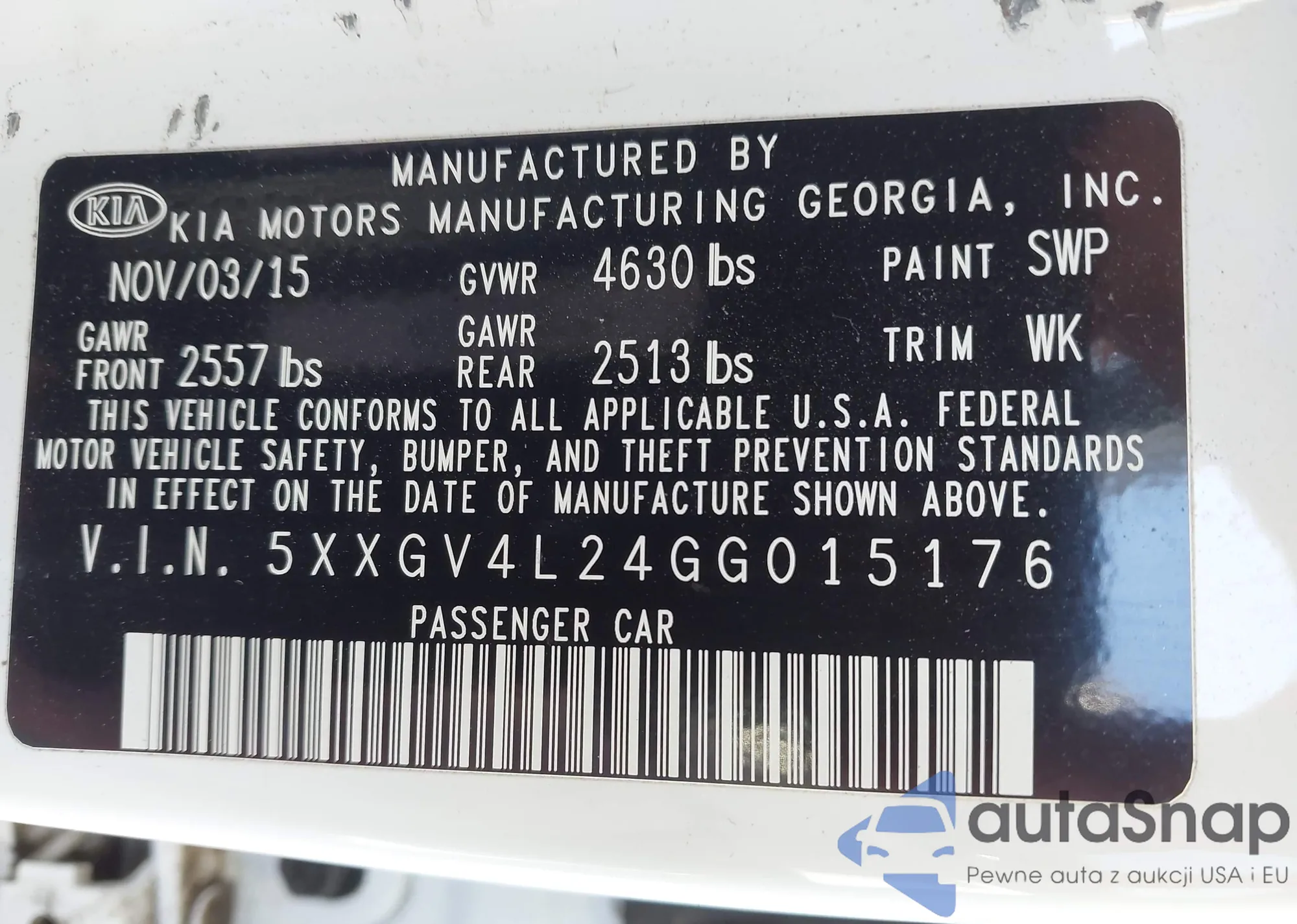 • VIN 5XXGV4L24GG015176