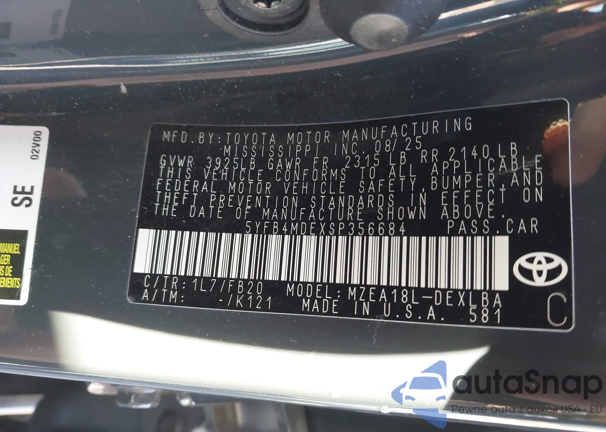 • VIN 5YFB4MDEXSP356684