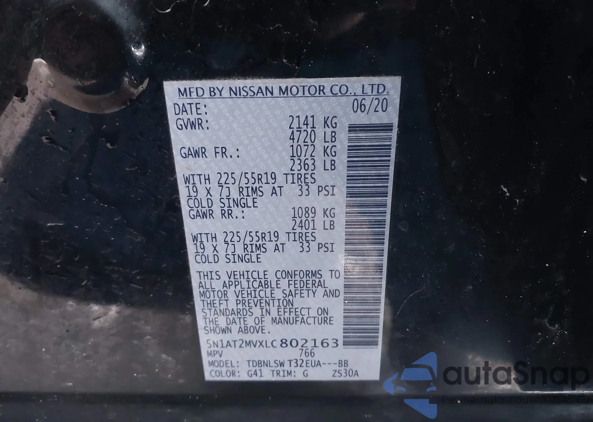 LOT: 44178720 VIN: 5N1AT2MVXLC802163