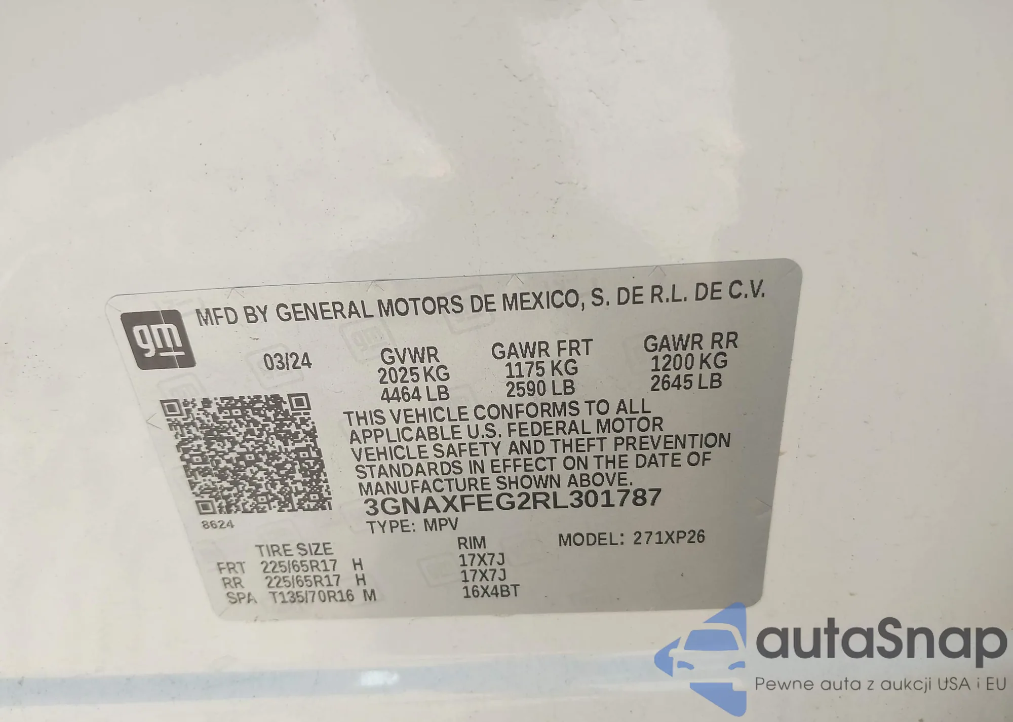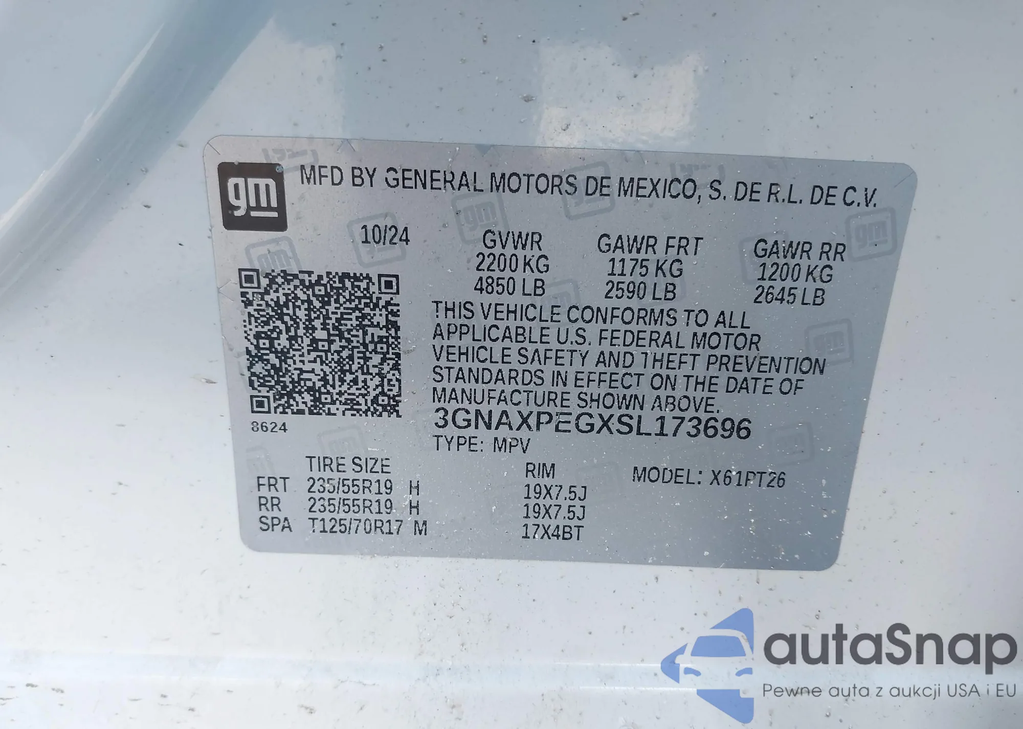 • VIN 3GNAXPEGXSL173696