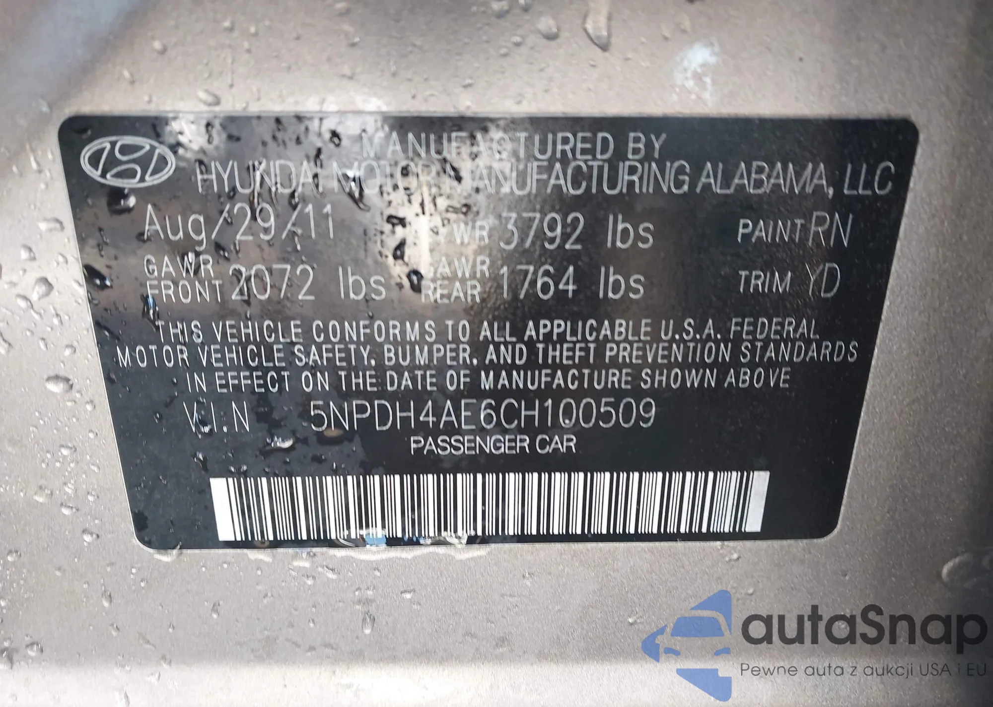LOT: 44324197 VIN: 5NPDH4AE6CH100509