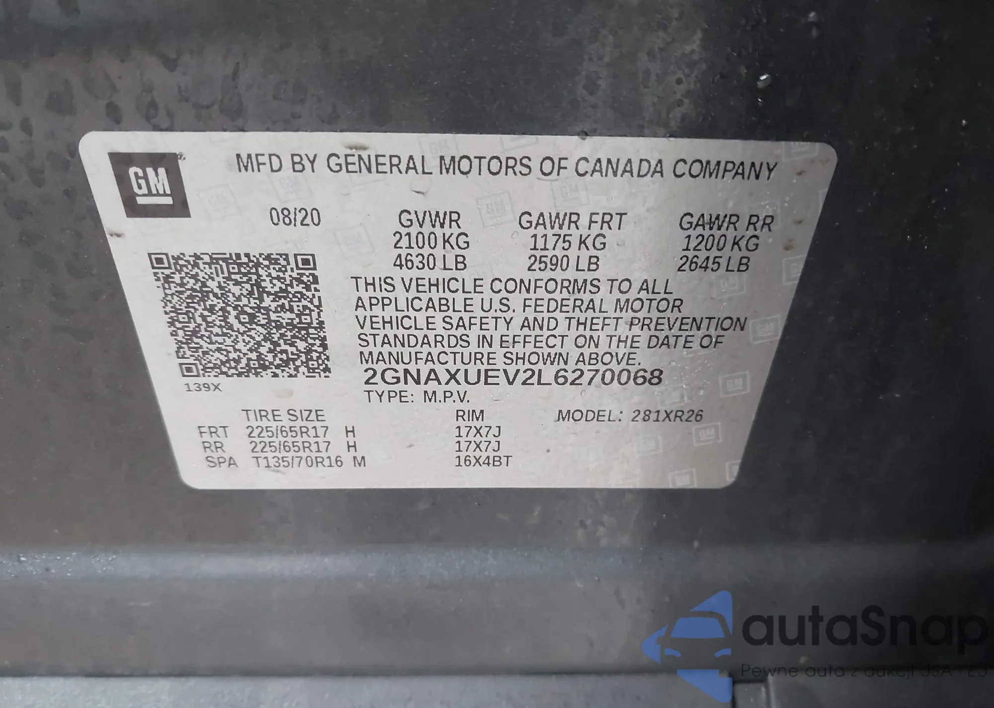 • VIN 2GNAXUEV2L6270068