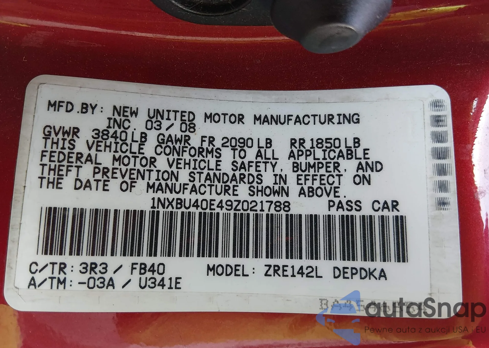 LOT: 44429601 VIN: 1NXBU40E49Z021788