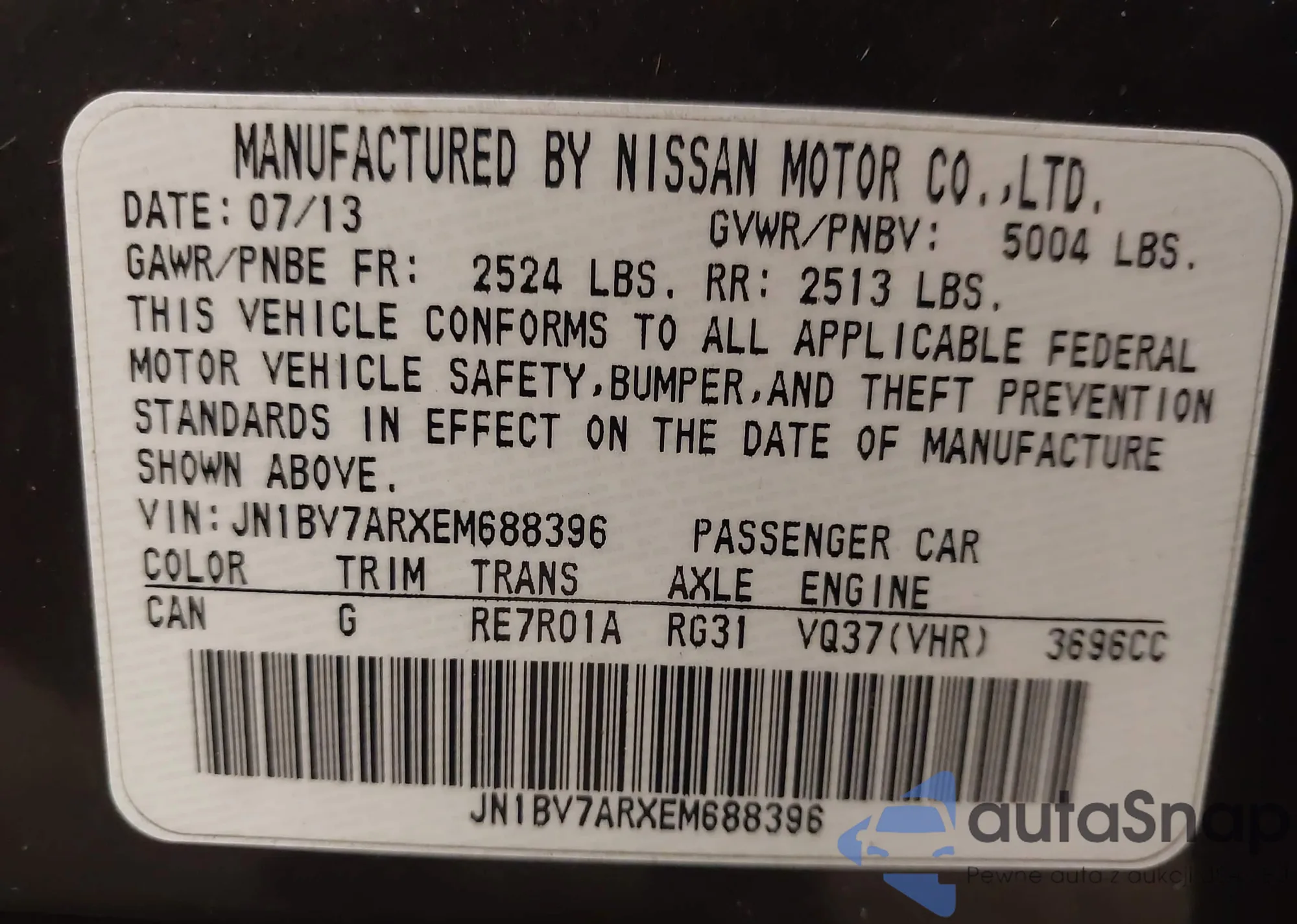 • VIN JN1BV7ARXEM688396