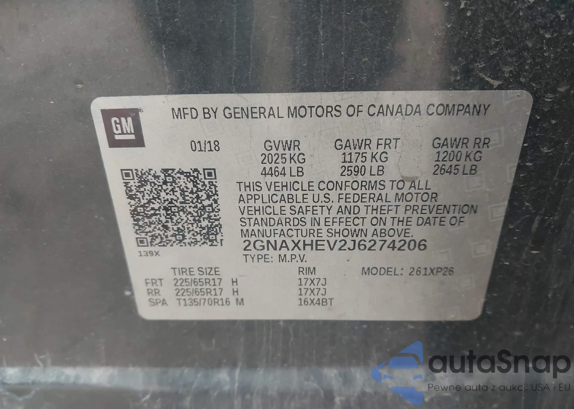 • VIN 2GNAXHEV2J6274206