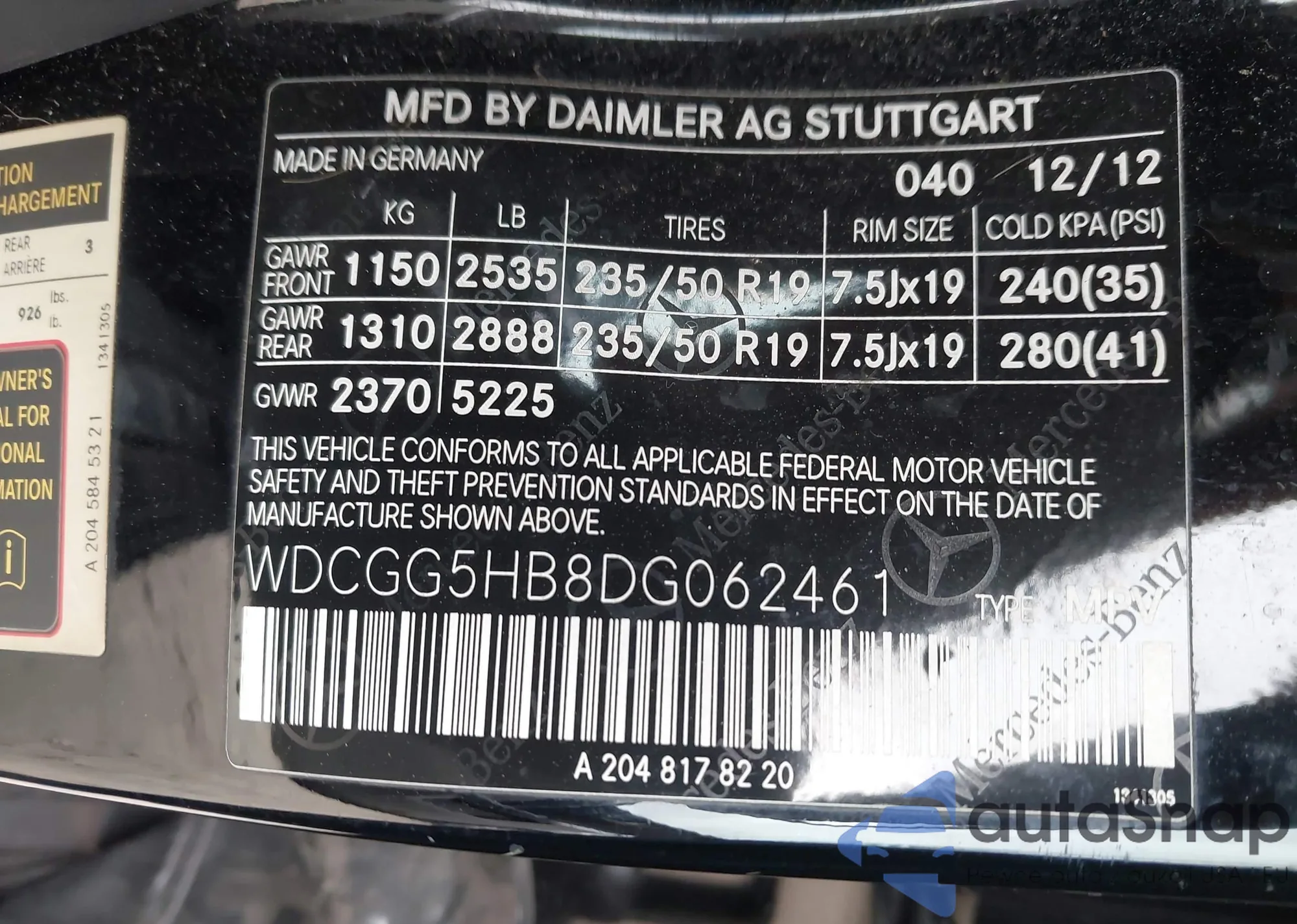• VIN WDCGG5HB8DG062461