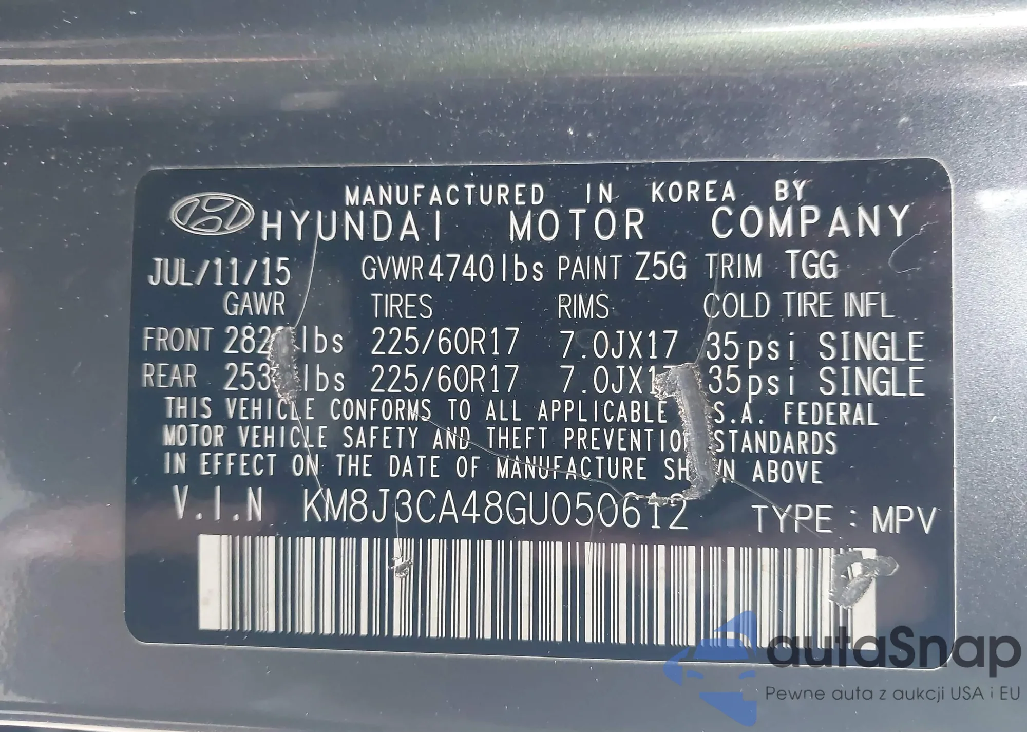 • VIN 5UXTA6C06M9F17086