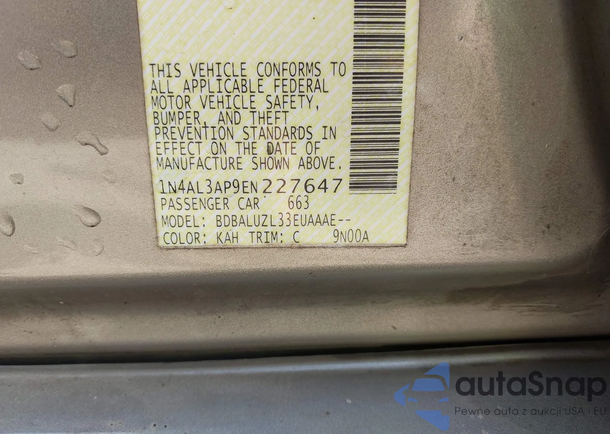 • VIN 1N4AL3AP9EN227647