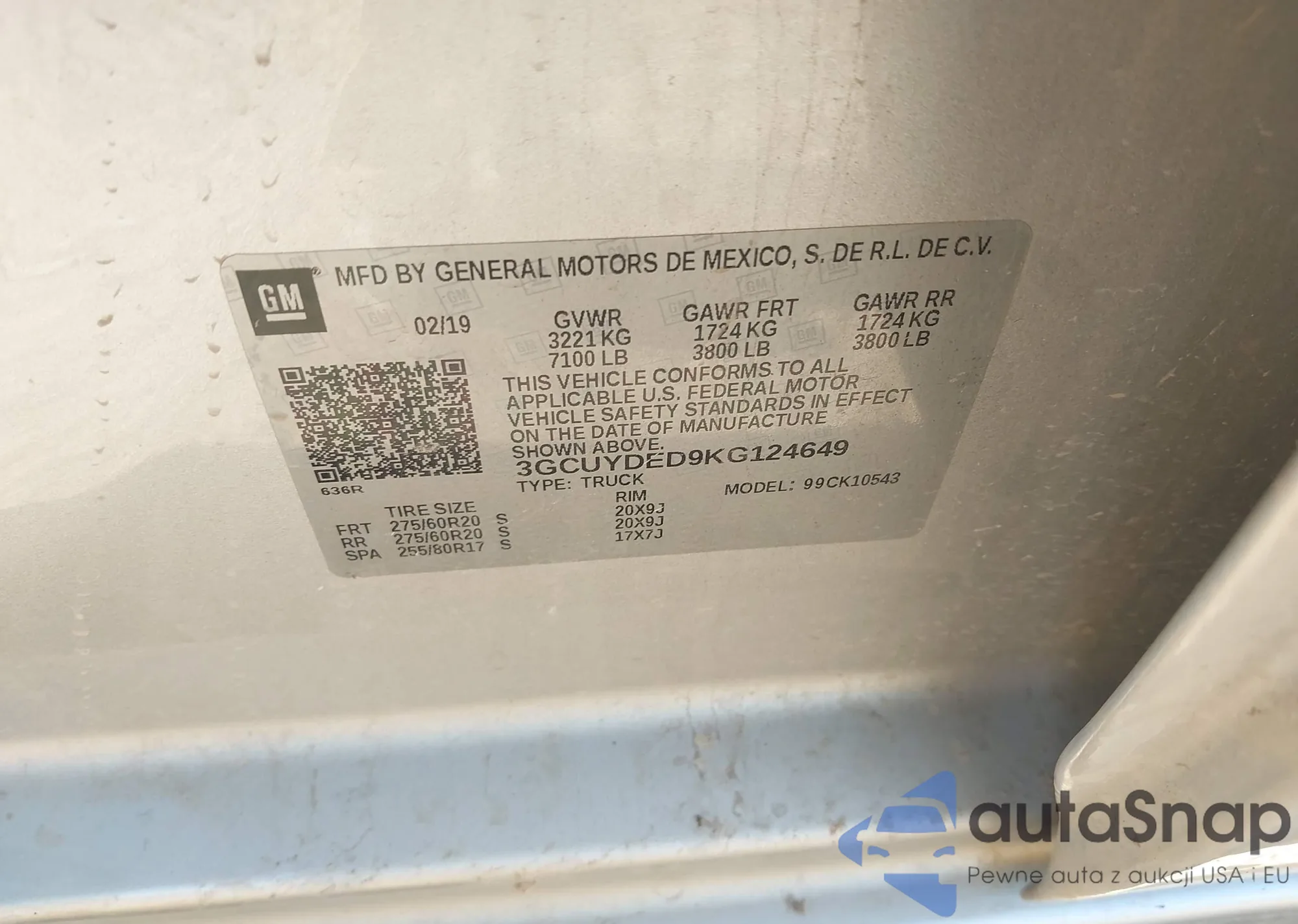 • VIN 3GCUYDED9KG124649