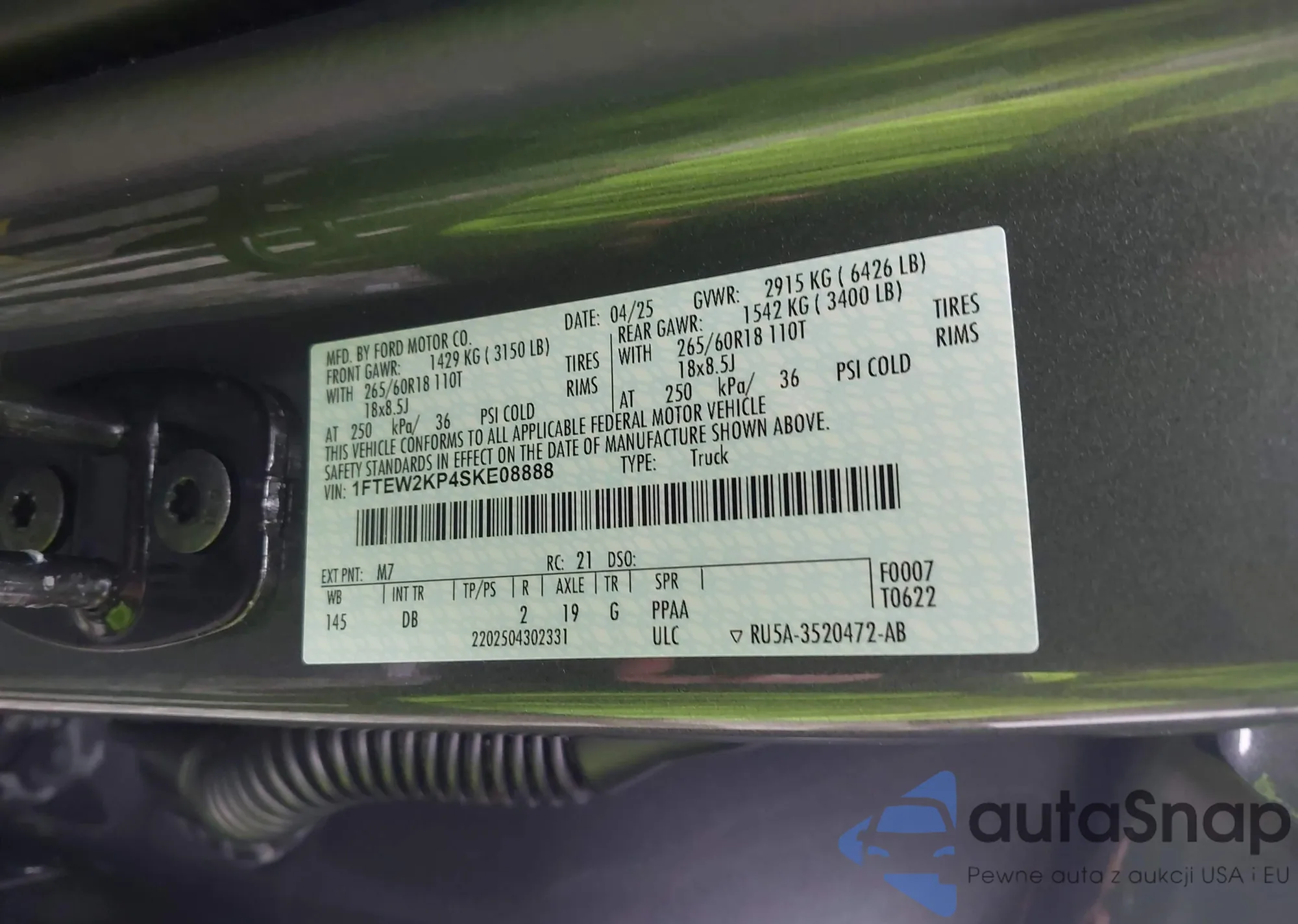 • VIN 1FTEW2KP4SKE08888