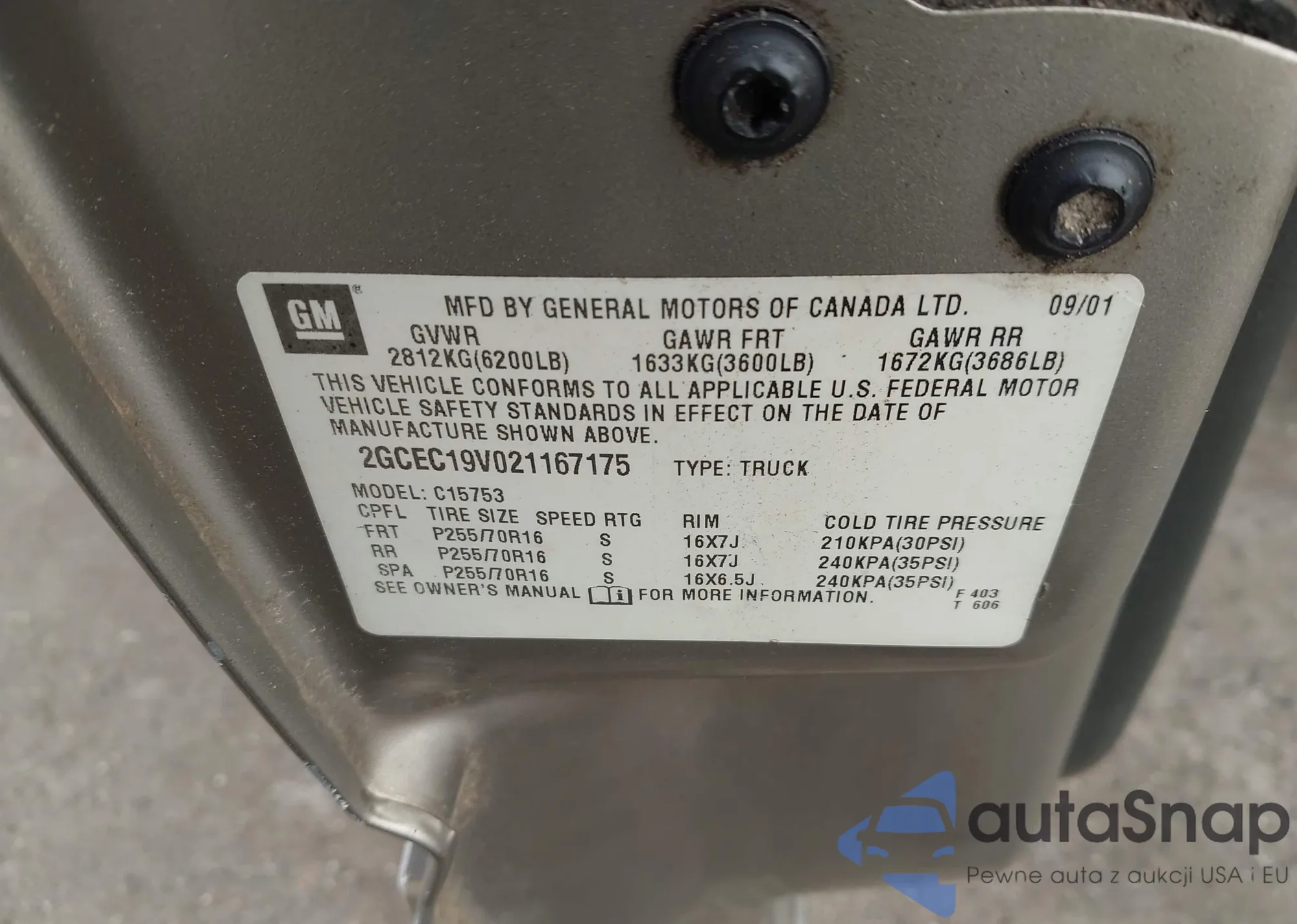 • VIN 2GCEC19V021167175