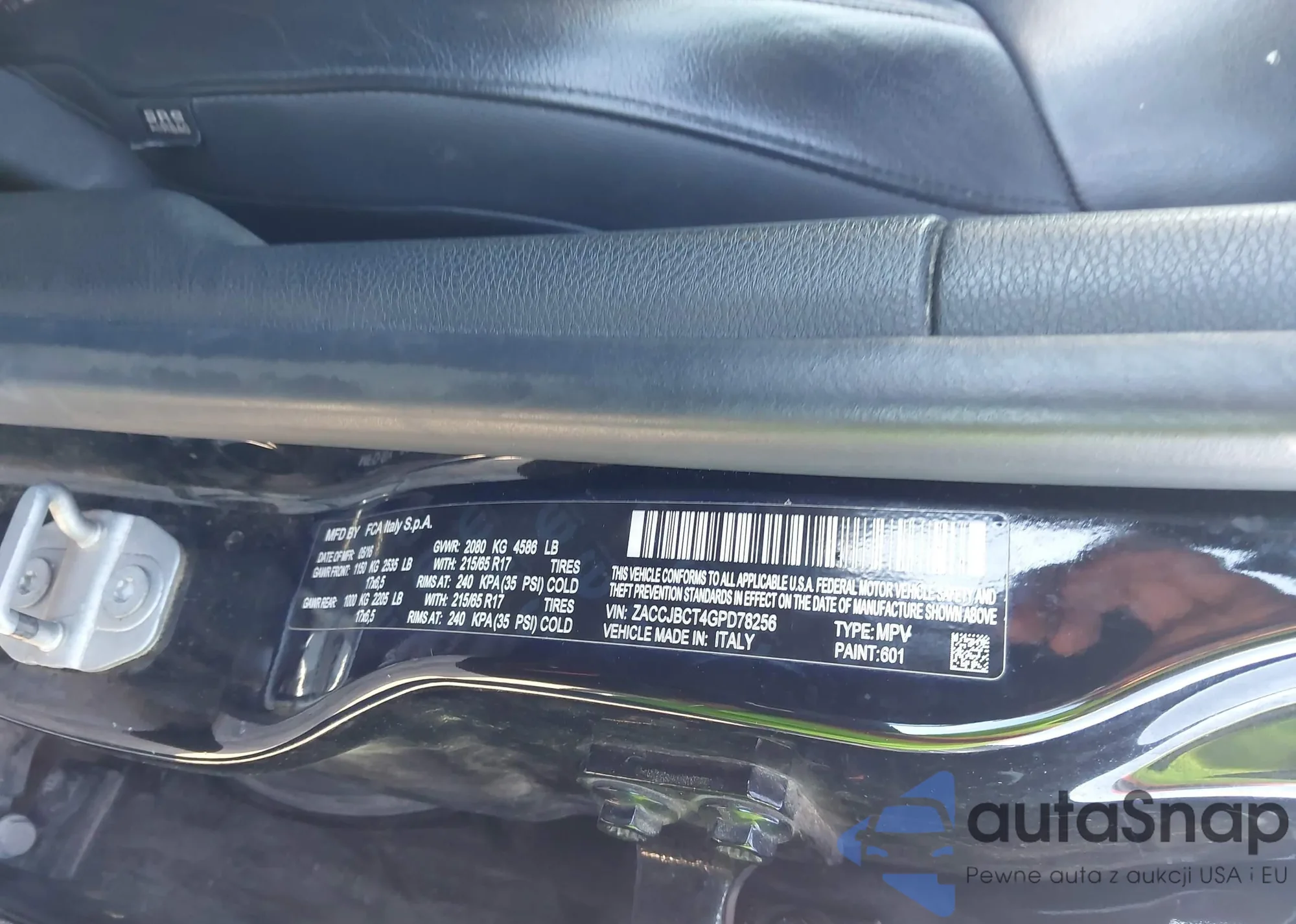 • VIN ZACCJBCT4GPD78256