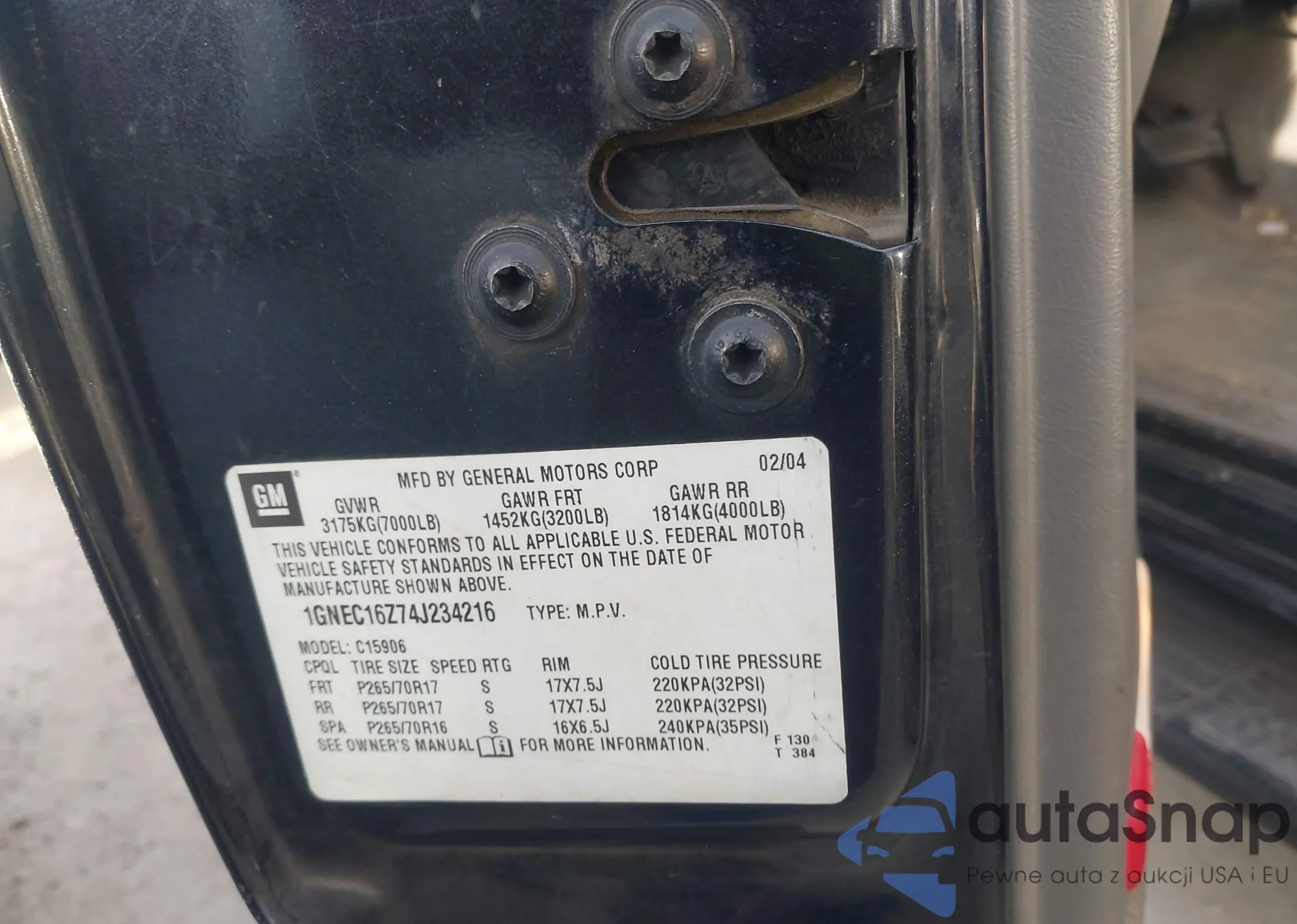 LOT: 43905915 VIN: 1GNEC16Z74J234216