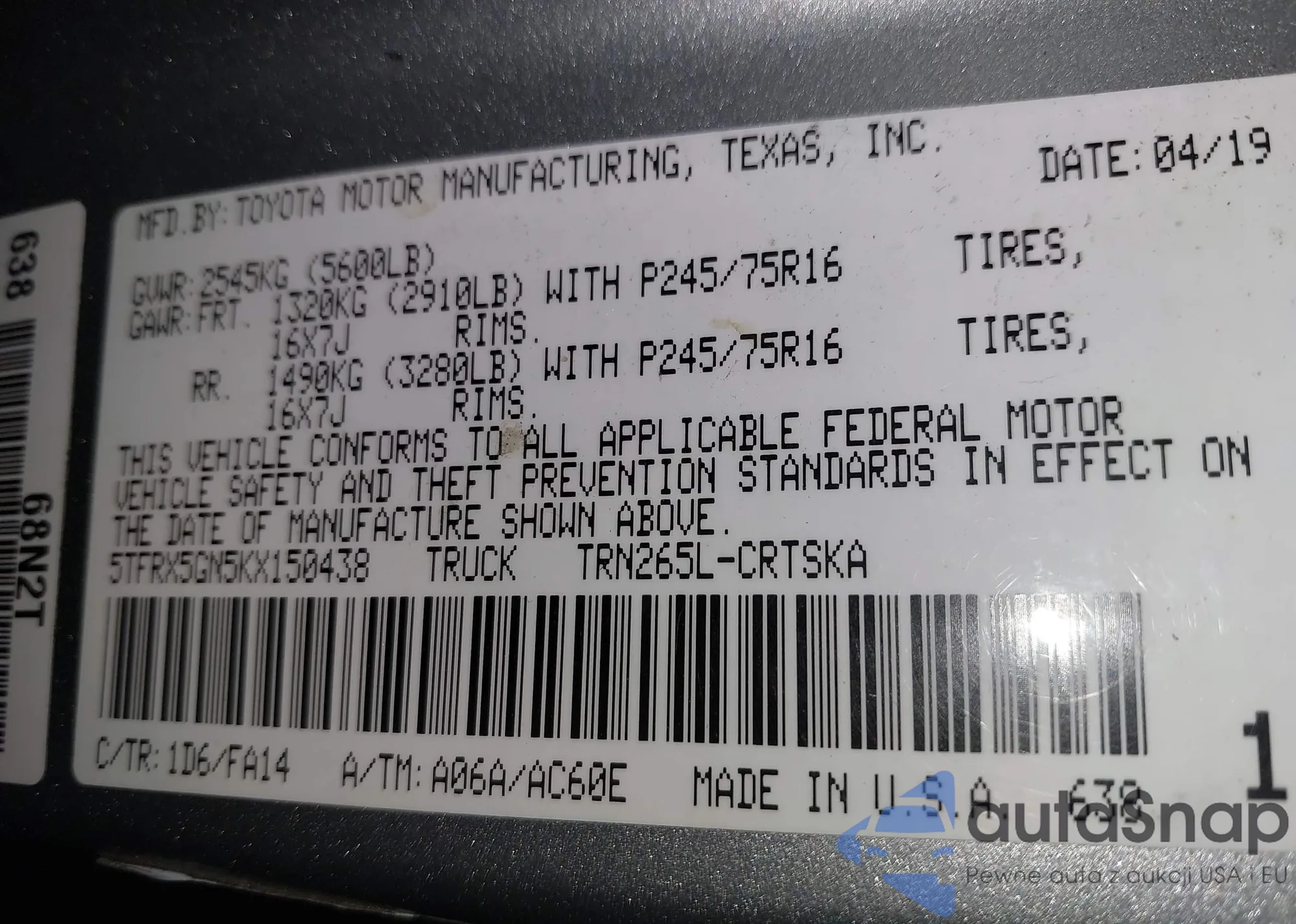• Lot number 44342065
