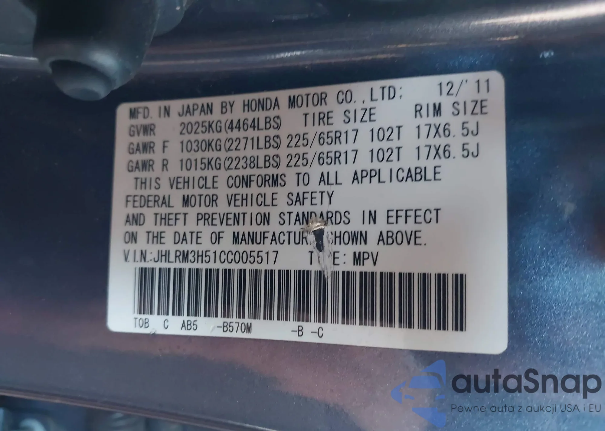 • VIN JHLRM3H51CC005517
